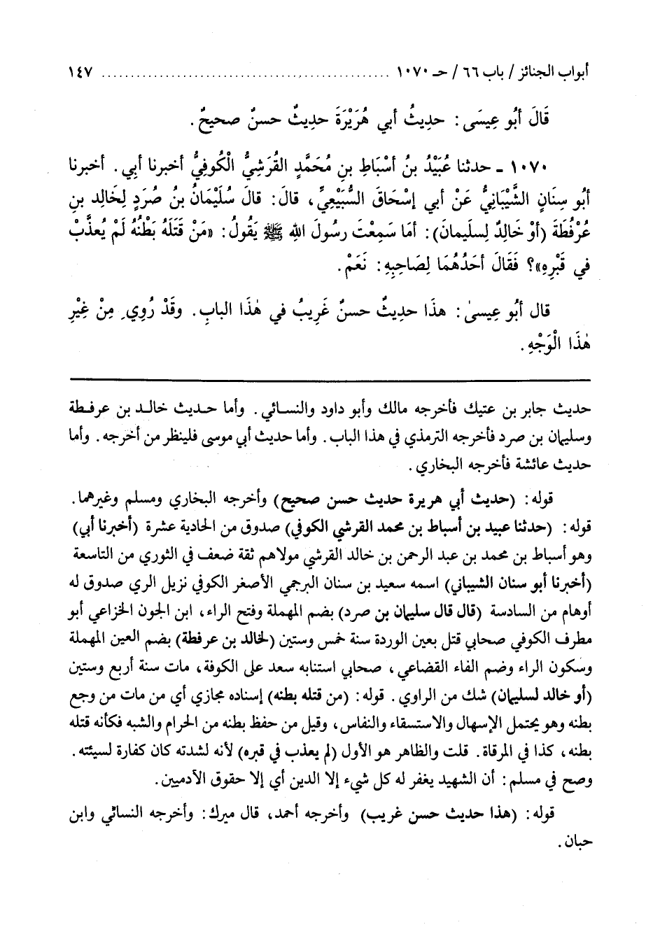 [1064] قَوْلُهُ (حَدِيثُ أَبِي هُرَيْرَةَ حَدِيثٌ حَسَنٌ صَحِيحٌ) وَأَخْرَجَهُ الْبُخَارِيُّ وَمُسْلِمٌ وَغَيْرُهُمَا