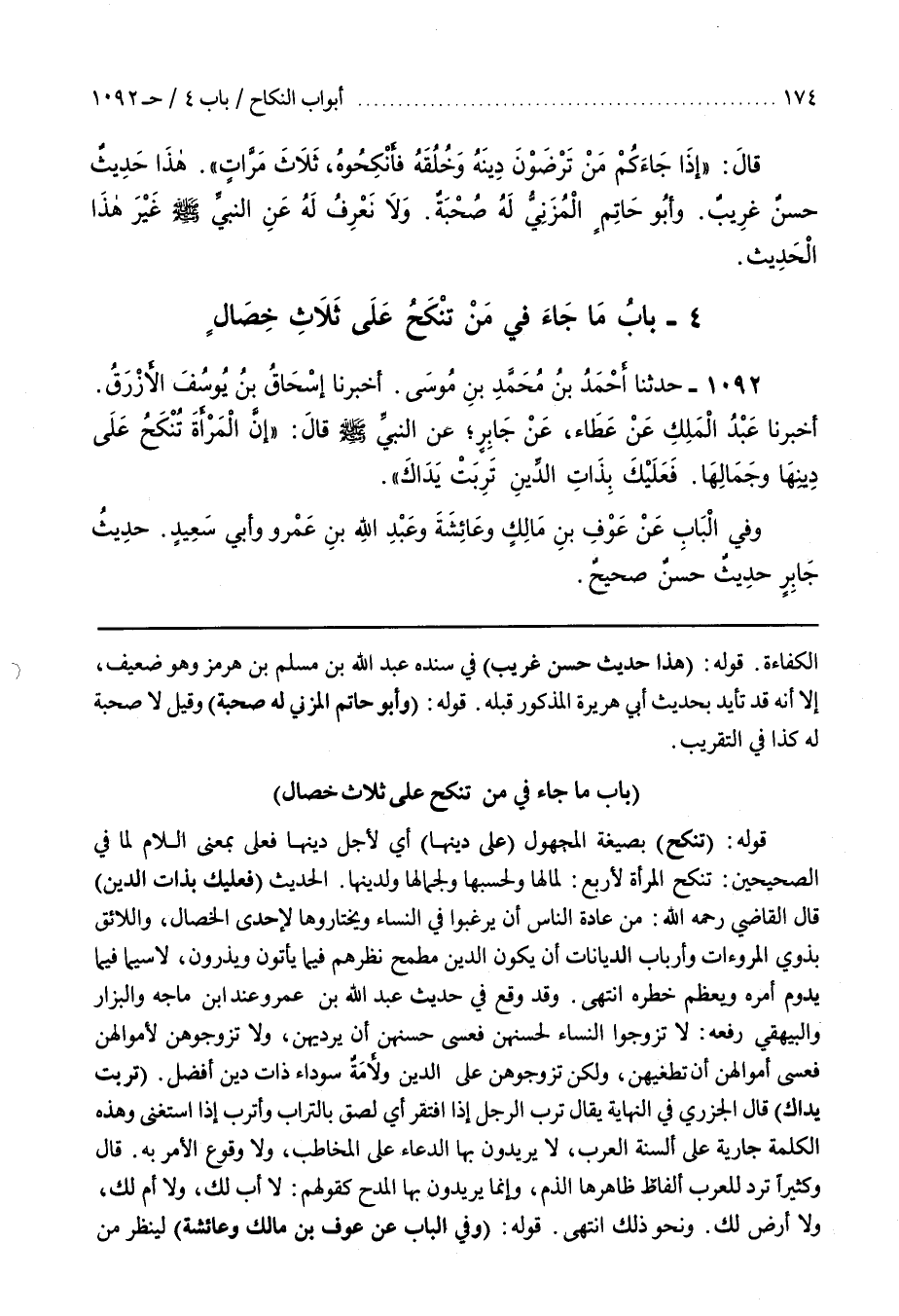 7 - (بَاب مَا جَاءَ أَنَّ الْمَرْأَةَ تُنْكَحُ عَلَى ثَلَاثِ خِصَالٍ)