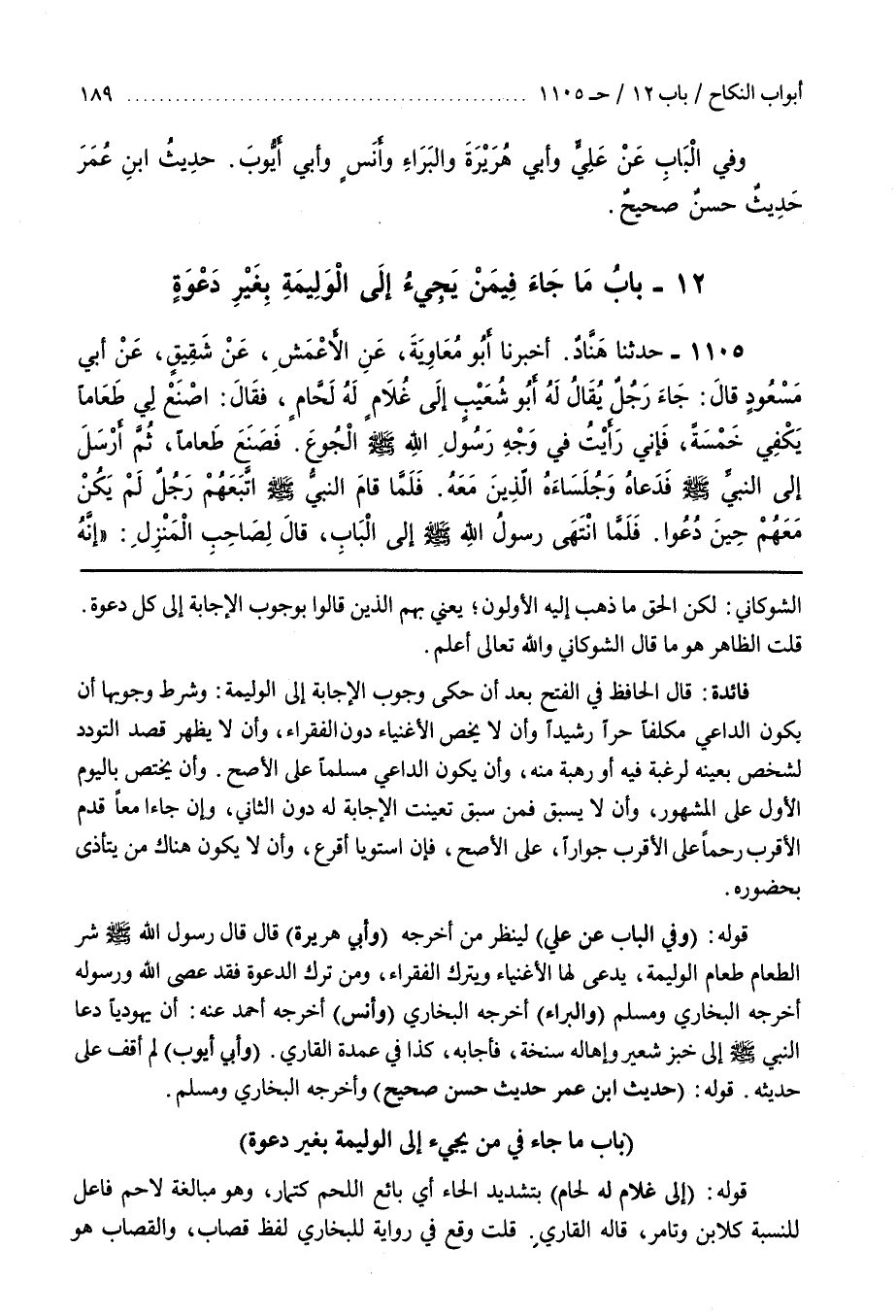 الشَّوْكَانِيُّ لَكِنَّ الْحَقَّ مَا ذَهَبَ إِلَيْهِ الْأَوَّلُونَ يَعْنِي بِهِمْ الَّذِينَ قَالُوا بِوُجُوبِ الْإِجَابَةِ إِلَى كُلِّ دَعْوَةٍ