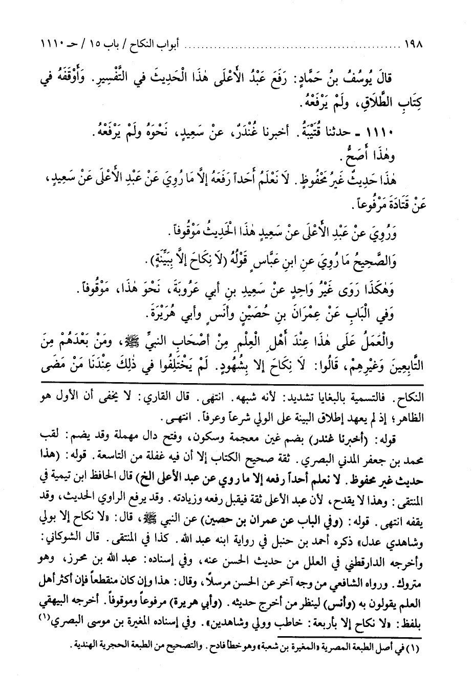 قَوْلُهُ (وَفِي الْبَابِ عَنْ عِمْرَانَ بْنِ حُصَيْنٍ) عَنِ النبي صلى الله عليه وسلم قال لا نِكَاحَ إِلَّا بِوَلِيٍّ وَشَاهِدَيْ عَدْلٍ ذَكَرَهُ أَحْمَدُ بْنُ حَنْبَلٍ فِي رِوَايَةِ ابْنِهِ عَبْدِ اللَّهِ