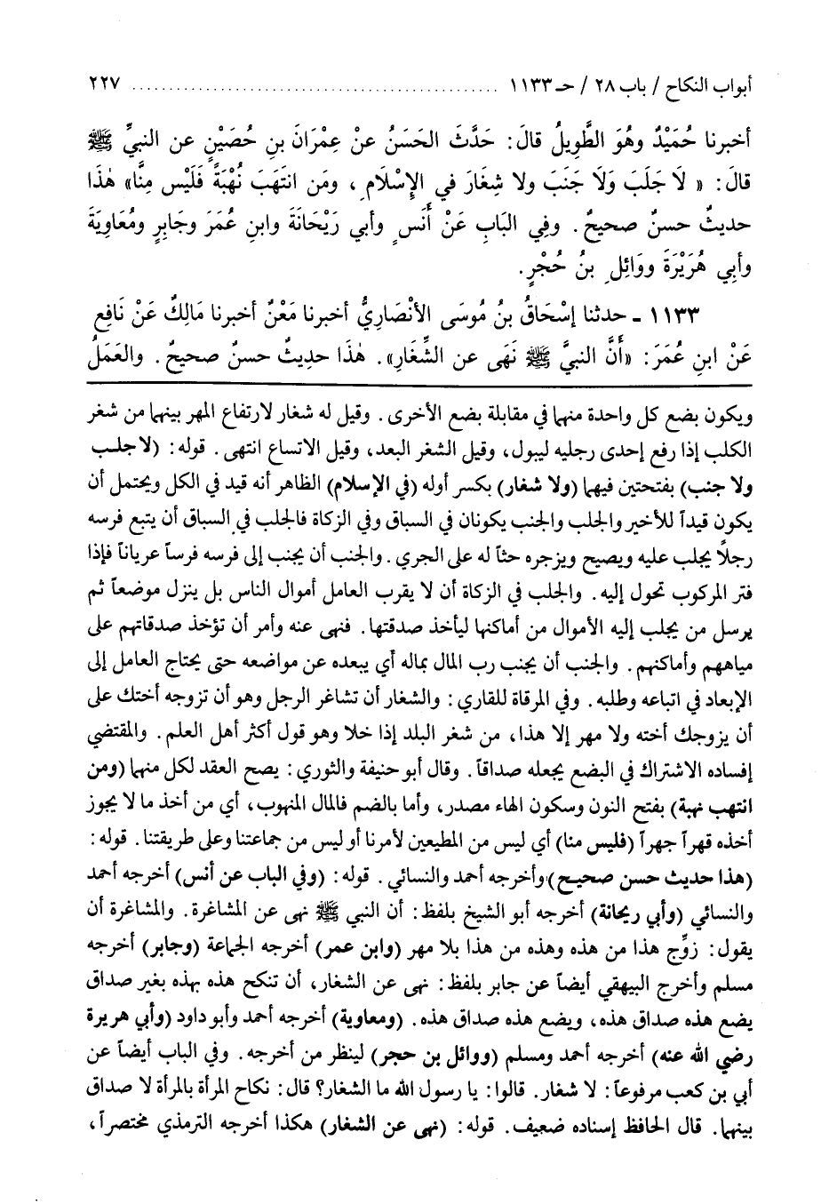 [1124] قَوْلُهُ (نَهَى عَنِ الشِّغَارِ) هَكَذَا أَخْرَجَهُ التِّرْمِذِيُّ مُخْتَصَرًا