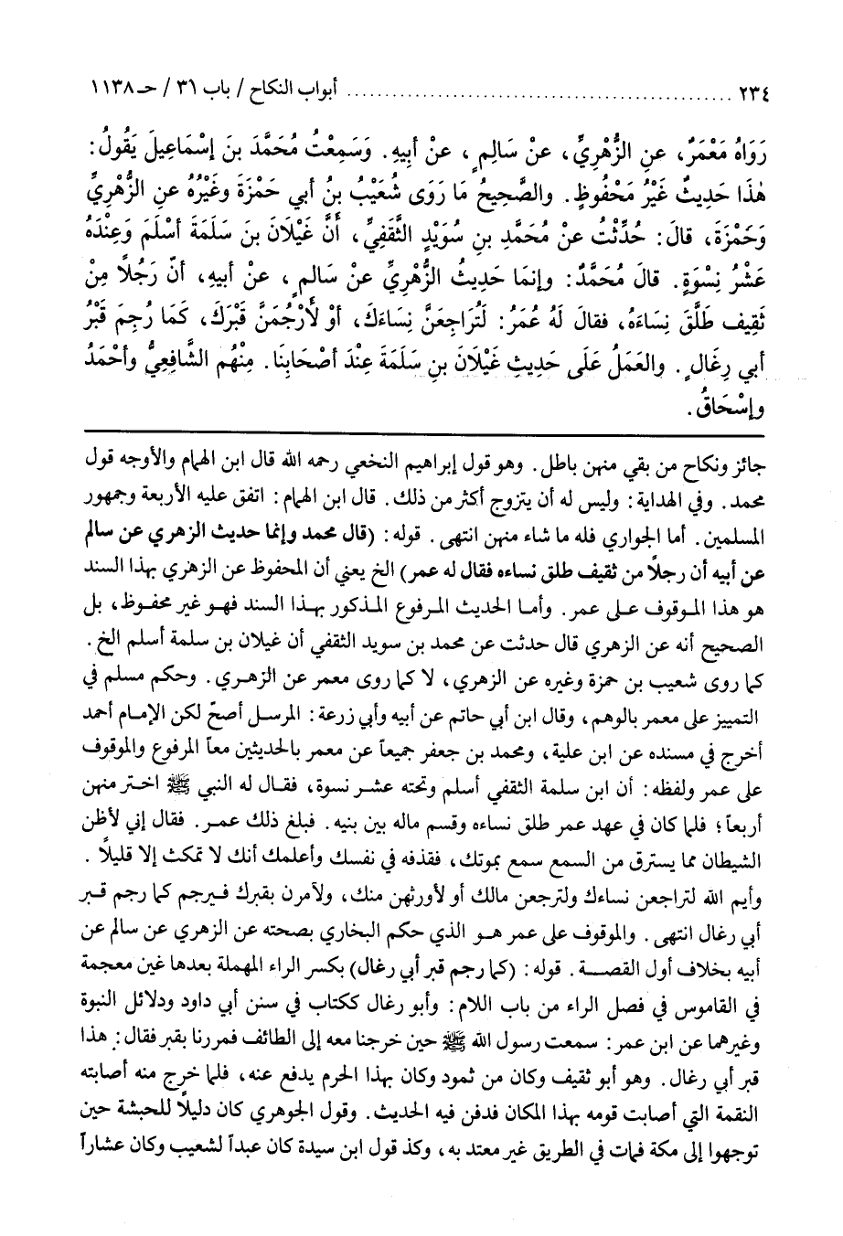 وحَكَمَ مُسْلِمٌ فِي التَّمْيِيزِ عَلَى معمر بالوهم وقال بن أَبِي حَاتِمٍ عَنْ أَبِيهِ وَأَبِي زُرْعَةَ الْمُرْسَلُ أَصَحُّ لَكِنَّ الْإِمَامَ أَحْمَدَ أَخْرَجَ فِي مُسْنَدِهِ عن بن عُلَيَّةَ وَمُحَمَّدِ بْنِ جَعْفَرٍ جَمِيعًا عَنْ مَعْمَرٍ بِالْحَدِيثَيْنِ مَعًا الْمَرْفُوعِ وَالْمَوْقُوفِ عَلَى عُمَرَ وَلَفْظُهُ أن بن سَلَمَةَ الثَّقَفِيَّ أَسْلَمَ وَتَحْتَهُ عَشْرَةُ نِسْوَةٍ فَقَالَ لَهُ النَّبِيُّ صَلَّى اللَّهُ عَلَيْهِ وَسَلَّمَ اخْتَرْ مِنْهُنَّ أَرْبَعًا فَلَمَّا كَانَ فِي عَهْدِ عُمَرَ طَلَّقَ نِسَاءَهُ وَقَسَمَ مَالَهُ بَيْنَ بَنِيهِ