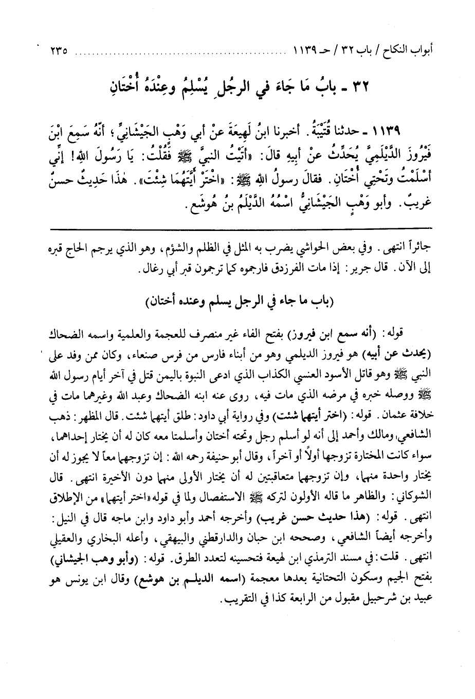 05 - (بَاب مَا جَاءَ فِي الرَّجُلِ يُسْلِمُ وعنده أختان)