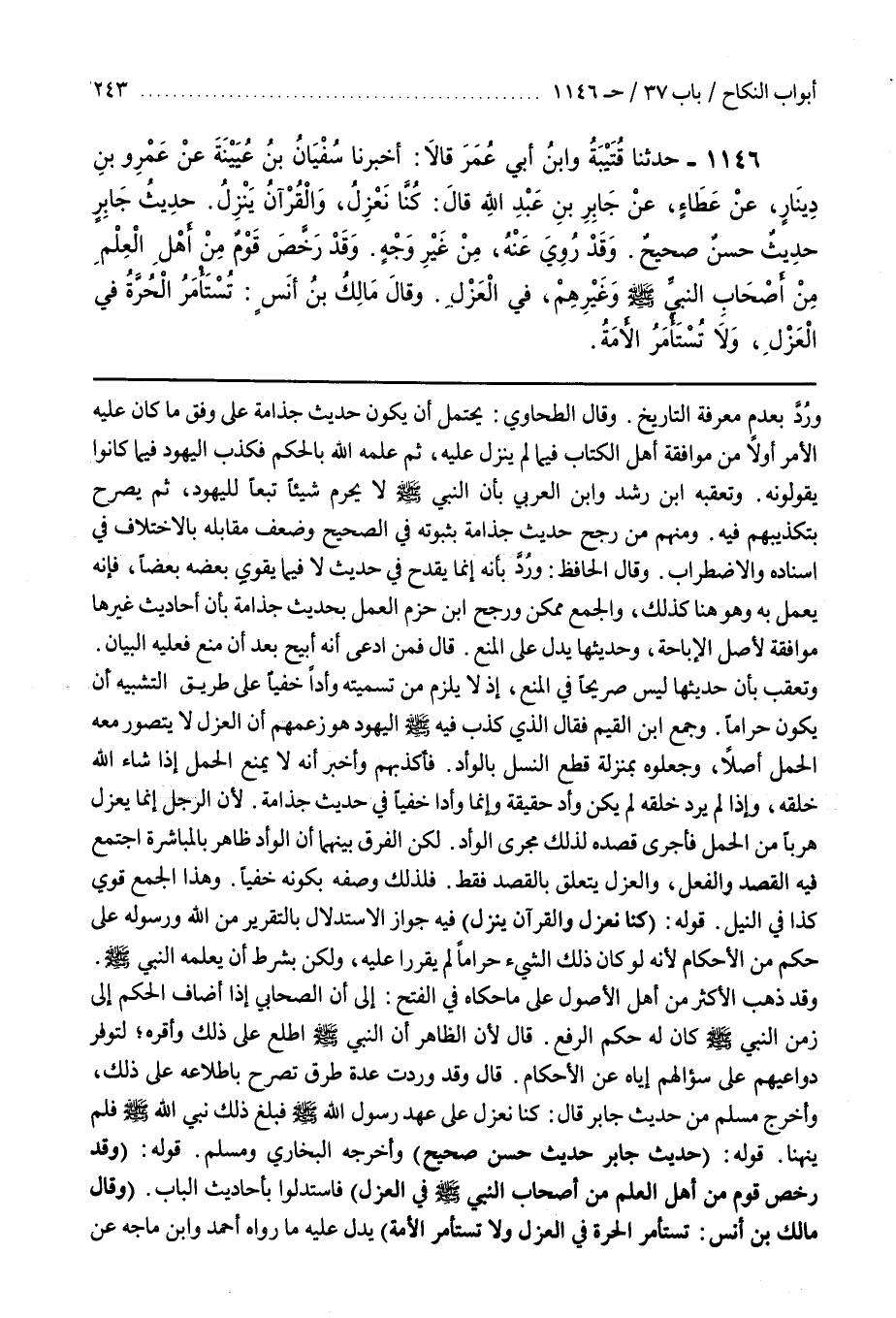 [1137] قَوْلُهُ (كُنَّا نَعْزِلُ وَالْقُرْآنُ يَنْزِلُ) فِيهِ جَوَازُ الِاسْتِدْلَالِ بِالتَّقْرِيرِ مِنَ اللَّهِ وَرَسُولِهِ عَلَى حُكْمٍ مِنْ الْأَحْكَامِ لِأَنَّهُ لَوْ كَانَ ذَلِكَ الشَّيْءُ حَرَامًا لَمْ يُقَرَّرَا عَلَيْهِ وَلَكِنْ بِشَرْطِ أَنْ يَعْلَمَهُ النَّبِيُّ صَلَّى اللَّهُ عَلَيْهِ وَسَلَّمَ