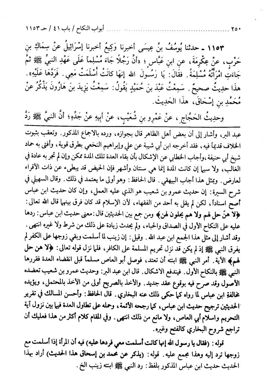 قَالَ الْحَافِظُ وَهُوَ أَوْلَى مَا يُعْتَمَدُ فِي ذَلِكَ وقَالَ السُّهَيْلِيُّ فِي شَرْحِ السِّيرَةِ إِنَّ حَدِيثَ عَمْرِو بْنِ شُعَيْبٍ هُوَ الَّذِي عليه العمل وإن كان حديث بن عَبَّاسٍ أَصَحَّ إِسْنَادًا لَكِنْ لَمْ يَقُلْ بِهِ أَحَدٌ مِنَ الْفُقَهَاءِ لِأَنَّ الْإِسْلَامَ قَدْ كَانَ فرق بينهما قال الله تعالى لاهن حل لهم ولا هم يحلون لهن وَمَنْ جَمَعَ بَيْنَ الْحَدِيثَيْنِ قَالَ مَعْنَى حَدِيثِ بن عَبَّاسٍ رَدَّهَا عَلَيْهِ عَلَى النِّكَاحِ الْأَوَّلِ فِي الصَّدَاقِ وَالْحِبَاءِ وَلَمْ يُحْدِثْ زِيَادَةً عَلَى ذَلِكَ مِنْ شَرْطٍ وَلَا غَيْرِهِ انْتَهَى