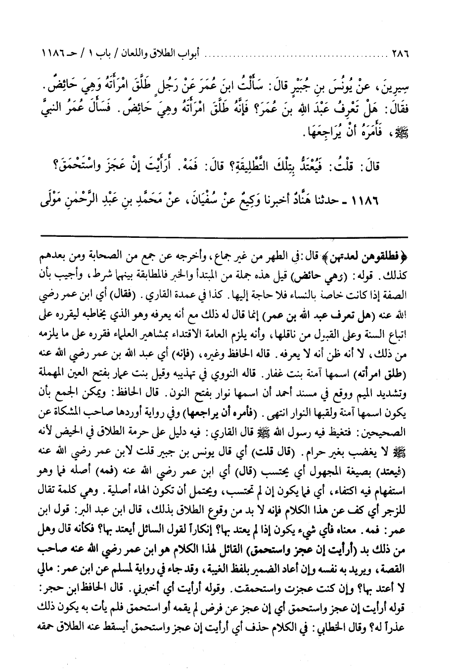 (فَأَمَرَهُ أَنْ يُرَاجِعَهَا) وفِي رِوَايَةٍ أَوْرَدَهَا صَاحِبُ الْمِشْكَاةِ عَنِ الصَّحِيحَيْنِ فَتَغَيَّظَ فِيهِ رَسُولُ اللَّهِ صَلَّى اللَّهُ عَلَيْهِ وَسَلَّمَ قال القارىء فِيهِ دَلِيلٌ عَلَى حُرْمَةِ الطَّلَاقِ فِي الْحَيْضِ لِأَنَّهُ صَلَّى اللَّهُ عَلَيْهِ وَسَلَّمَ لَا يَغْضَبُ بِغَيْرِ حَرَامٍ