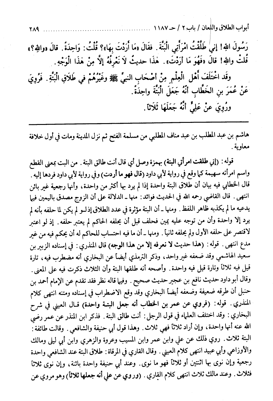 مِنَ الْبَتِّ بِمَعْنَى الْقَطْعِ وَاسْمُ امْرَأَتِهِ سُهَيْمَةُ كَمَا وَقَعَ فِي رِوَايَةٍ لِأَبِي دَاوُدَ (قَالَ فَهُوَ مَا أَرَدْتُ) وفِي رِوَايَةٍ لِأَبِي دَاوُدَ فَرَدَّهَا إِلَيْهِ