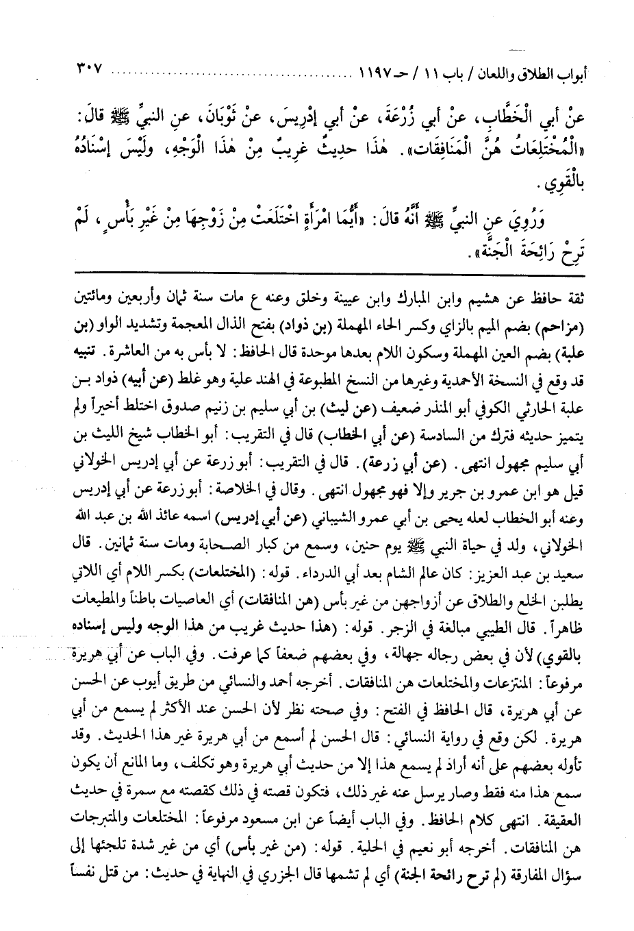 وفِي الْبَابِ عَنْ أَبِي هُرَيْرَةَ مَرْفُوعًا الْمُنْتَزِعَاتُ وَالْمُخْتَلِعَاتُ هُنَّ الْمُنَافِقَاتُ