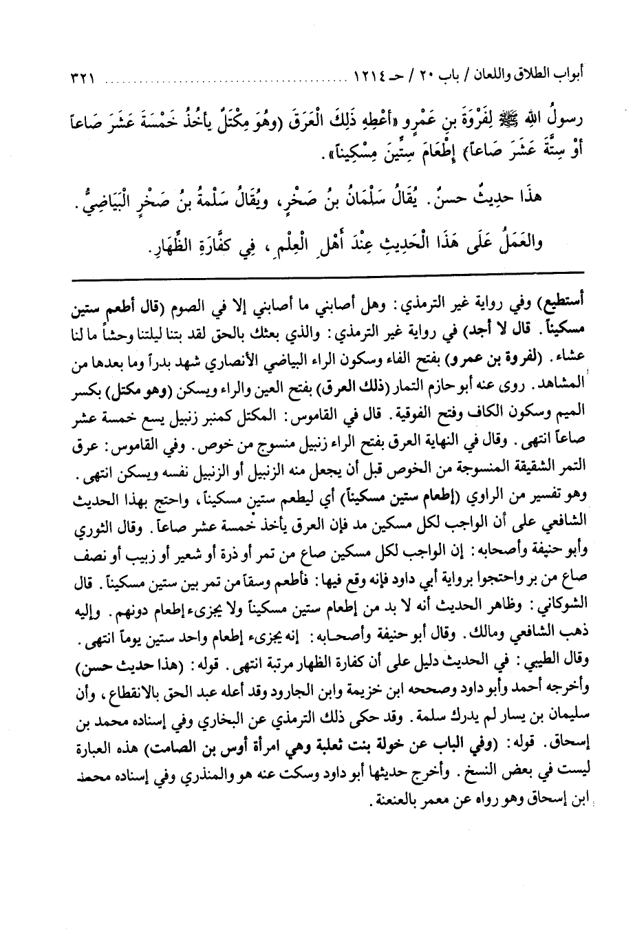 وهُوَ تَفْسِيرٌ مِنَ الرَّاوِي (إِطْعَامُ سِتِّينَ مِسْكِينًا) أَيْ لِيُطْعِمْ سِتِّينَ مِسْكِينًا وَاحْتَجَّ بِهَذَا الْحَدِيثِ الشَّافِعِيُّ عَلَى أَنَّ الْوَاجِبَ لِكُلِّ مِسْكِينٍ مُدٌّ فَإِنَّ الْعَرَقَ يَأْخُذُ خَمْسَةَ عَشْرَ صَاعًا
