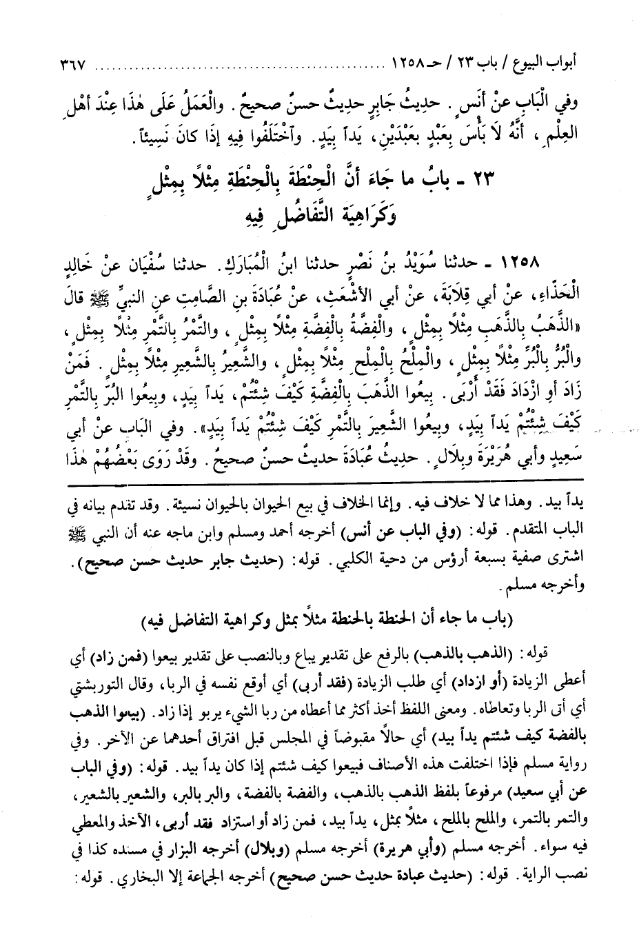 3 - (بَاب مَا جَاءَ أَنَّ الْحِنْطَةَ بالحنطة مثلا بمثل)