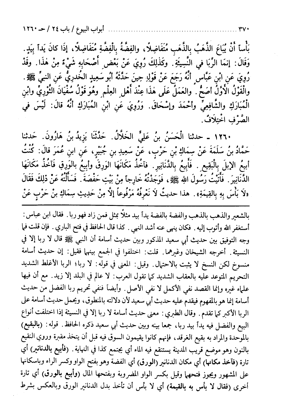 وقَالَ الطَّبَرِيُّ مَعْنَى حَدِيثِ أُسَامَةَ لَا رِبَا إِلَّا فِي النَّسِيئَةِ إِذَا اخْتَلَفَتْ أَنْوَاعُ الْبَيْعِ وَالْفَضْلُ فِيهِ يَدًا بِيَدٍ رِبَا جَمْعًا بَيْنَهُ وَبَيْنَ حَدِيثِ أَبِي سَعِيدٍ ذَكَرَهُ الْحَافِظُ