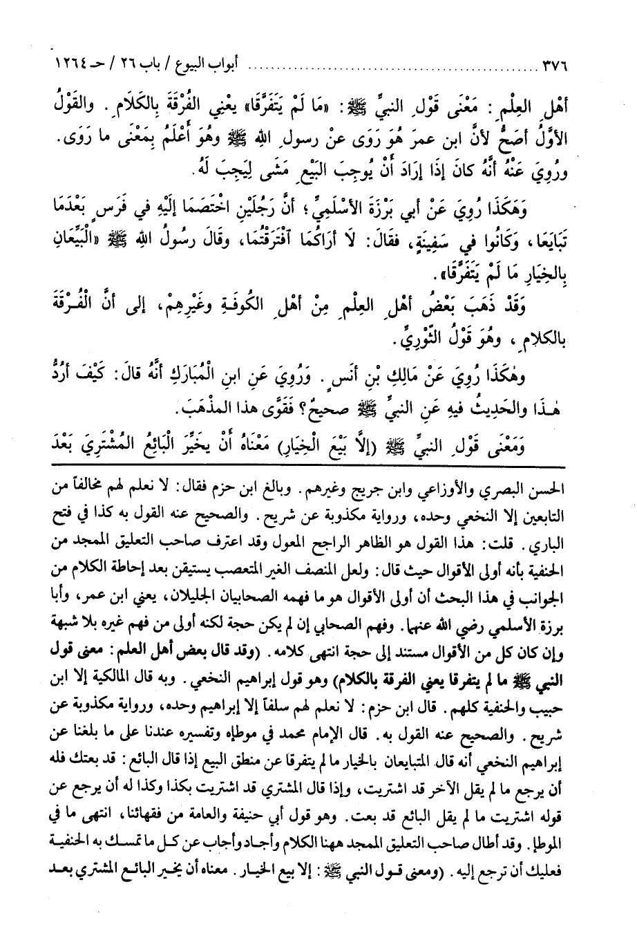 (وَقَدْ قَالَ بَعْضُ أَهْلِ الْعِلْمِ مَعْنَى قَوْلِ النَّبِيِّ صَلَّى اللَّهُ عَلَيْهِ وَسَلَّمَ مَا لَمْ يَتَفَرَّقَا يَعْنِي الْفُرْقَةَ بِالْكَلَامِ) وَهُوَ قَوْلُ إِبْرَاهِيمَ النَّخَعِيِّ