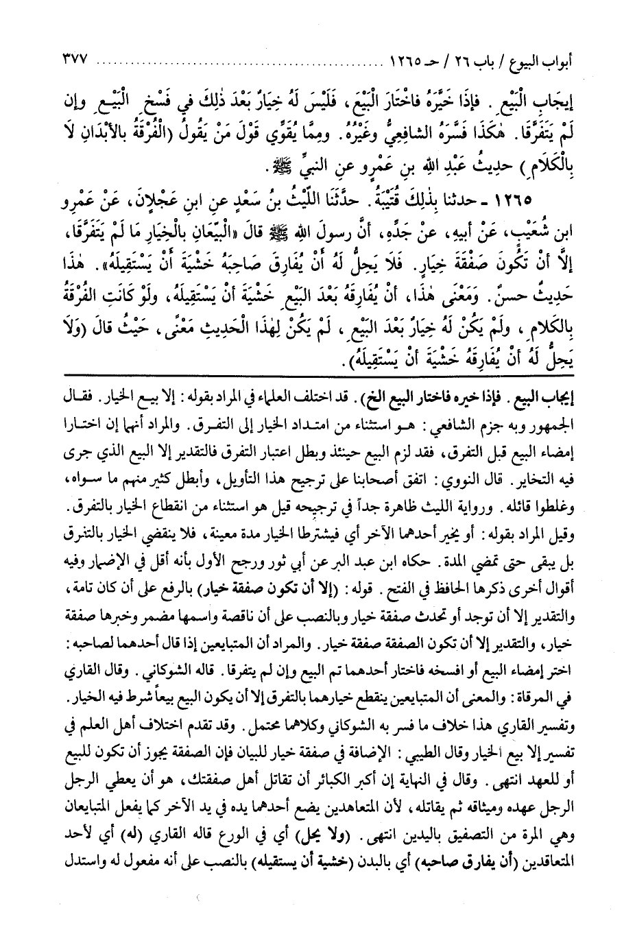 [1247] قَوْلُهُ (إِلَّا أَنْ تَكُونَ صَفْقَةُ خِيَارٍ) بِالرَّفْعِ عَلَى أَنَّ كَانَ تَامَّةٌ وَالتَّقْدِيرُ إِلَّا أَنْ تُوجَدَ أَوْ تَحْدُثَ صَفْقَةُ خِيَارٍ وَبِالنَّصْبِ عَلَى أَنَّ كَانَ نَاقِصَةٌ وَاسْمُهَا مُضْمِرٌ وَخَبَرُهَا صَفْقَةُ خِيَارٍ وَالتَّقْدِيرُ إِلَّا أَنْ تَكُونَ الصَّفْقَةُ صَفْقَةَ خِيَارٍ