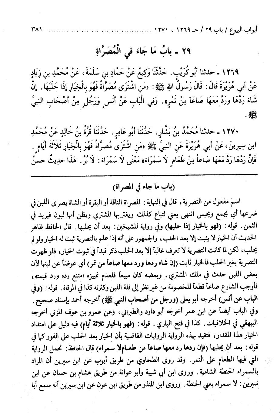 29 - (بَاب مَا جَاءَ فِي الْمُصَرَّاةِ)