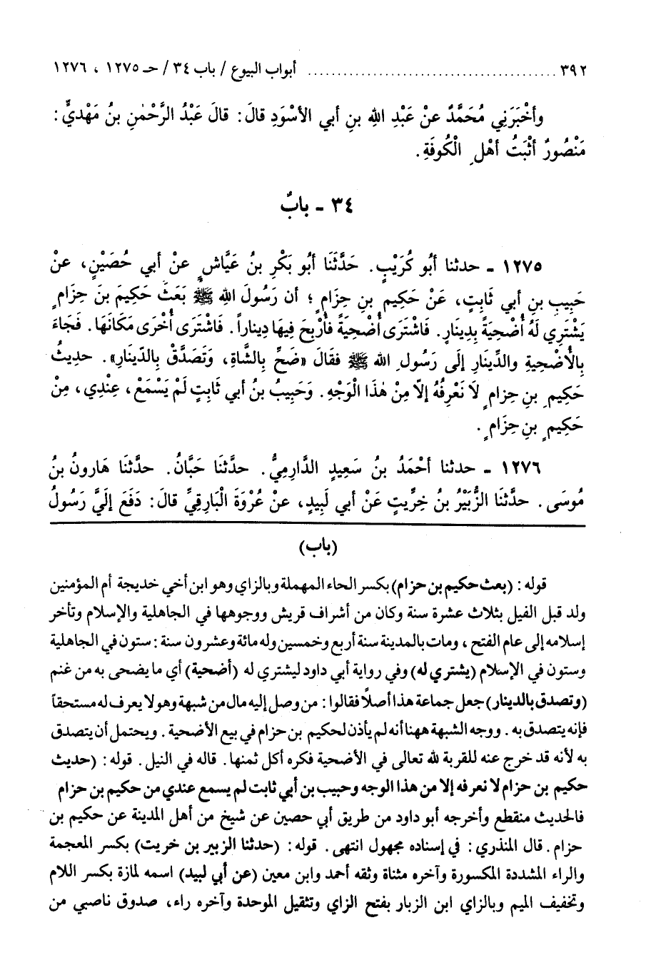 34 - باب [1257] قَوْلُهُ (بَعَثَ حَكِيمُ بْنُ حِزَامٍ) بِكَسْرِ الْحَاءِ المهملة وبالزاي وهو بن أَخِي خَدِيجَةَ أُمِّ الْمُؤْمِنِينَ وُلِدَ قَبْلَ الْفِيلِ بِثَلَاثَ عَشْرَةَ سَنَةً وَكَانَ مِنْ أَشْرَافِ قُرَيْشٍ وَوُجُوهِهَا فِي الْجَاهِلِيَّةِ وَالْإِسْلَامِ وَتَأَخَّرَ إِسْلَامُهُ إِلَى عَامِ الْفَتْحِ وَمَاتَ بِالْمَدِينَةِ سَنَةَ أَرْبَعٍ وَخَمْسِينَ وَلَهُ مِائَةٌ وَعِشْرُونَ سَنَةً سِتُّونَ فِي الْجَاهِلِيَّةِ وَسِتُّونَ فِي الْإِسْلَامِ (يَشْتَرِي لَهُ) وفِي رِوَايَةِ أَبِي دَاوُدَ لِيَشْتَرِيَ لَهُ (أُضْحِيَةً) أَيْ مَا يُضَحِّي بِهِ مِنْ غَنَمٍ (وَتَصَدَّقَ بِالدِّينَارِ) جَعَلَ جَمَاعَةٌ هَذَا أَصْلًا فَقَالُوا مَنْ وَصَلَ إِلَيْهِ مَالٌ مِنْ شُبْهَةٍ وَهُوَ لَا يَعْرِفُ لَهُ مستحقا فإنه يتصدق به