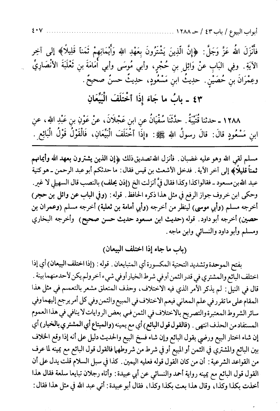 3 - (بَاب مَا جَاءَ إِذَا اخْتَلَفَ الْبَيِّعَانِ)