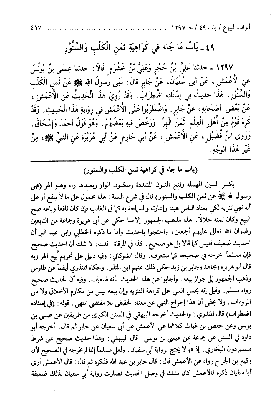 (بَاب مَا جَاءَ فِي كَرَاهِيَةِ ثَمَنِ الْكَلْبِ وَالسِّنَّوْرِ)