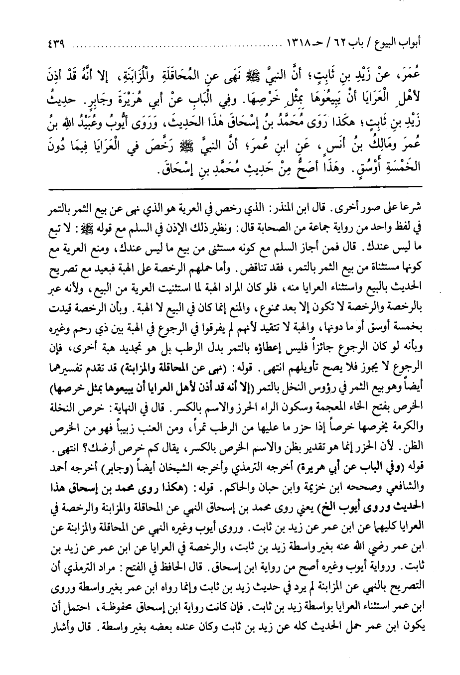 قَالَ الْحَافِظُ فِي الْفَتْحِ مُرَادُ التِّرْمِذِيِّ أَنَّ التَّصْرِيحَ بِالنَّهْيِ عَنِ الْمُزَابَنَةِ لَمْ يَرِدْ فِي حَدِيثِ زَيْدِ بْنِ ثَابِتٍ وَإِنَّمَا رَوَاهُ بن عمر بغير واسطة وروى بن عُمَرَ اسْتِثْنَاءَ الْعَرَايَا بِوَاسِطَةِ زَيْدِ بْنِ ثَابِتٍ