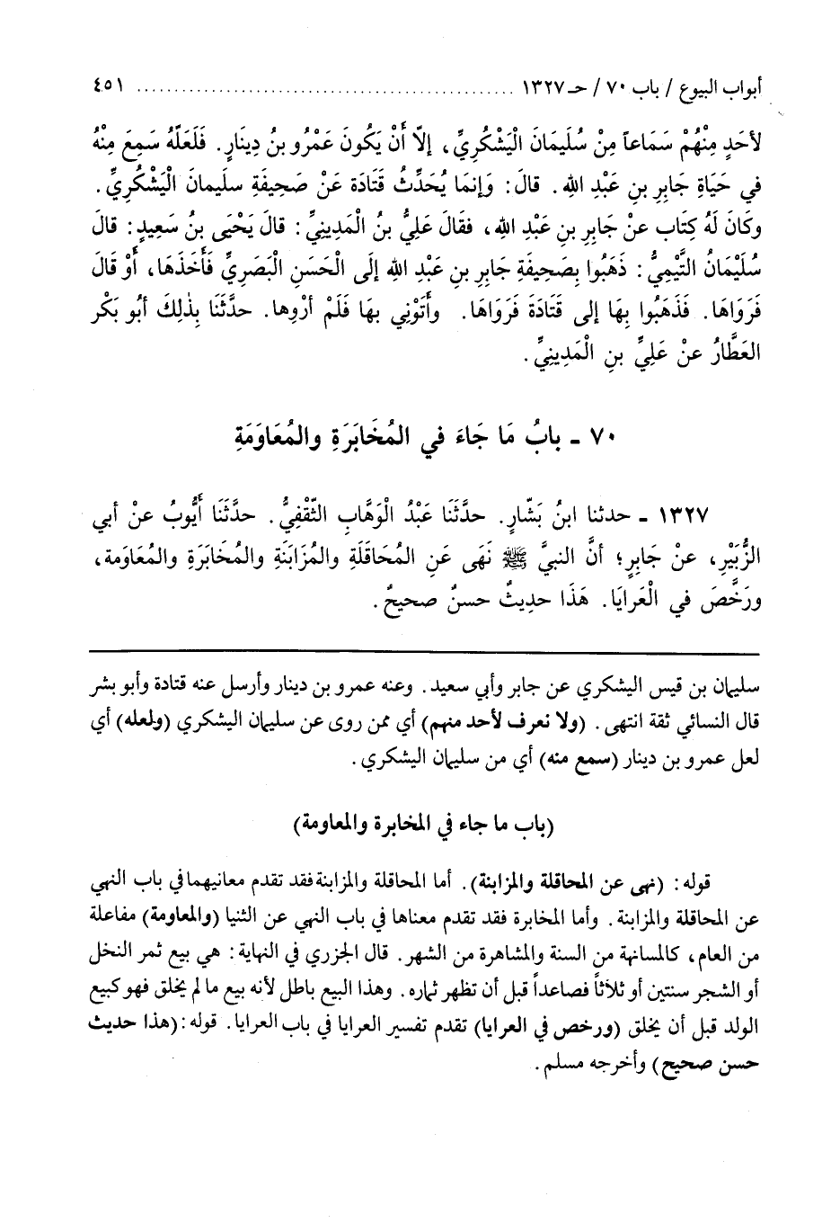 1 - (بَاب مَا جَاءَ فِي الْمُخَابَرَةِ وَالْمُعَاوَمَةِ)