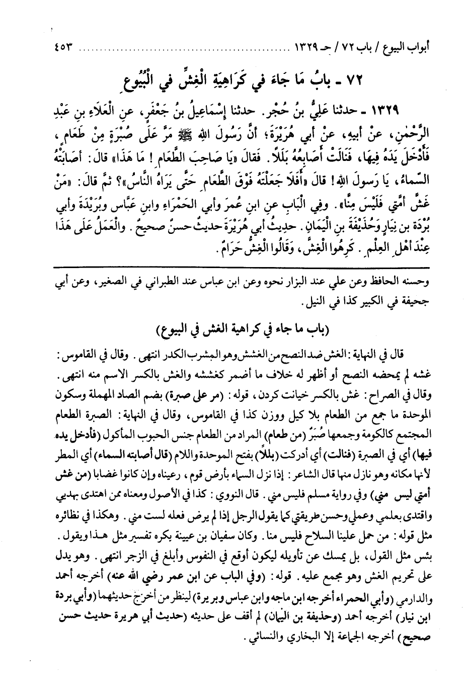3 - (بَاب مَا جَاءَ فِي كَرَاهِيَةِ الْغِشِّ فِي الْبُيُوعِ)