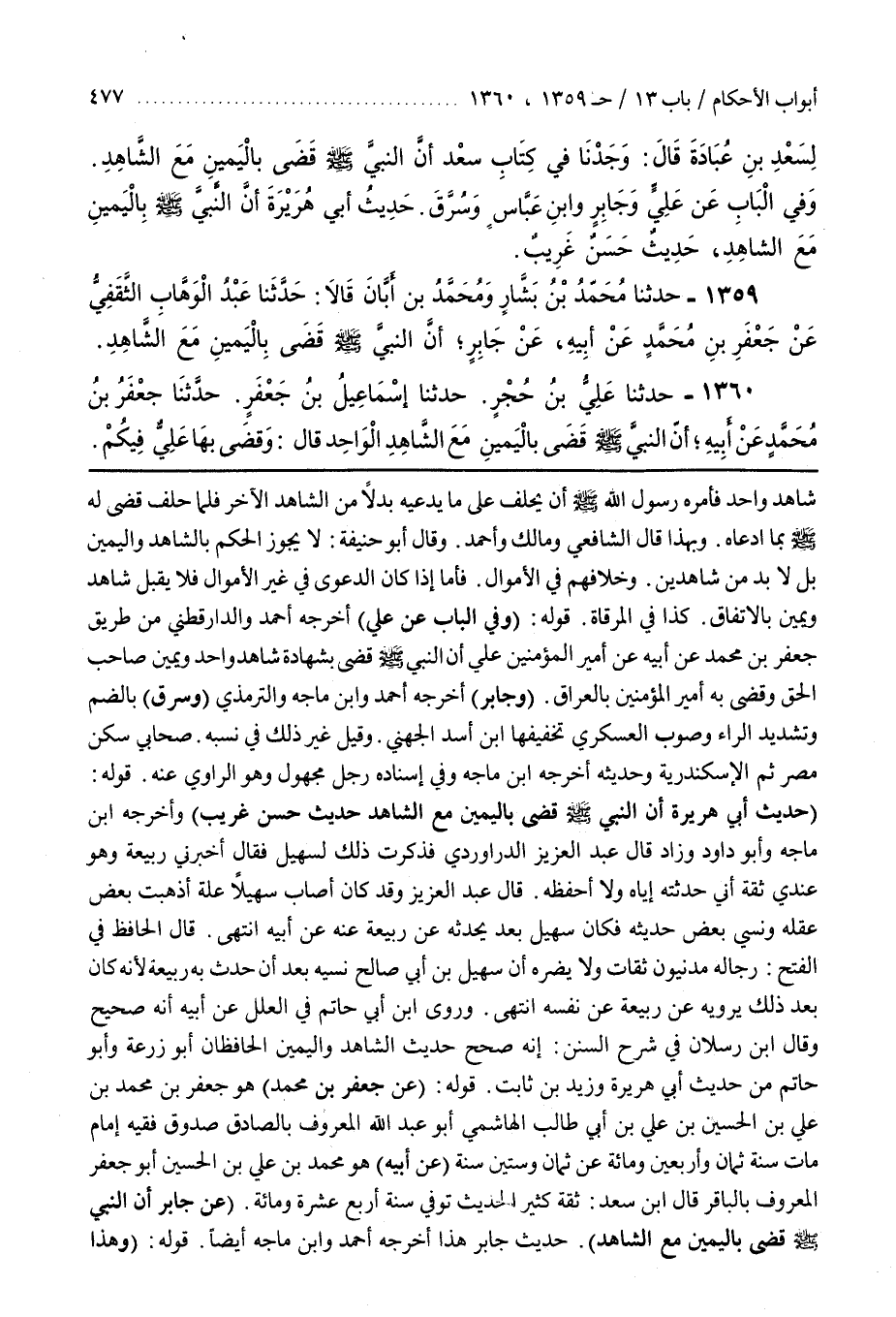 قَوْلُهُ (حَدِيثِ أَبِي هُرَيْرَةَ أَنَّ النَّبِيَّ صَلَّى اللَّهُ عَلَيْهِ وَسَلَّمَ قَضَى بِالْيَمِينِ مَعَ الشاهد حديث حسن غريب) وأخرجه بن مَاجَهْ وَأَبُو دَاوُدَ وَزَادَ قَالَ عَبْدُ الْعَزِيزِ الدَّرَاوَرْدِيُّ فَذَكَرْتُ ذَلِكَ لِسُهَيْلٍ فَقَالَ أَخْبَرَنِي رَبِيعَةُ وَهُوَ عِنْدِي ثِقَةٌ أَنِّي حَدَّثْتُهُ إِيَّاهُ وَلَا أَحْفَظُهُ