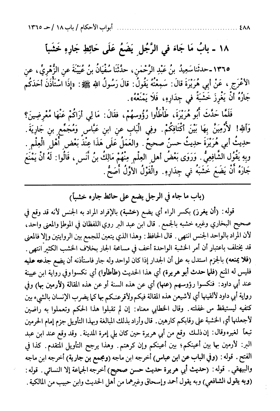 18 - (بَاب مَا جَاءَ فِي الرَّجُلِ يَضَعُ عَلَى حَائِطِ جَارِهِ خَشَبًا)
