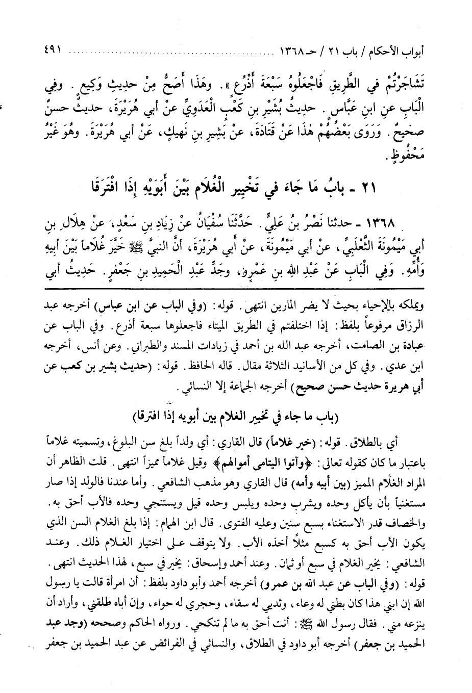 1 - مَا جَاءَ فِي تَخْيِيرِ الْغُلَامِ بَيْنَ أَبَوَيْهِ إِذَا افْتَرَقَا أَيْ بِالطَّلَاقِ