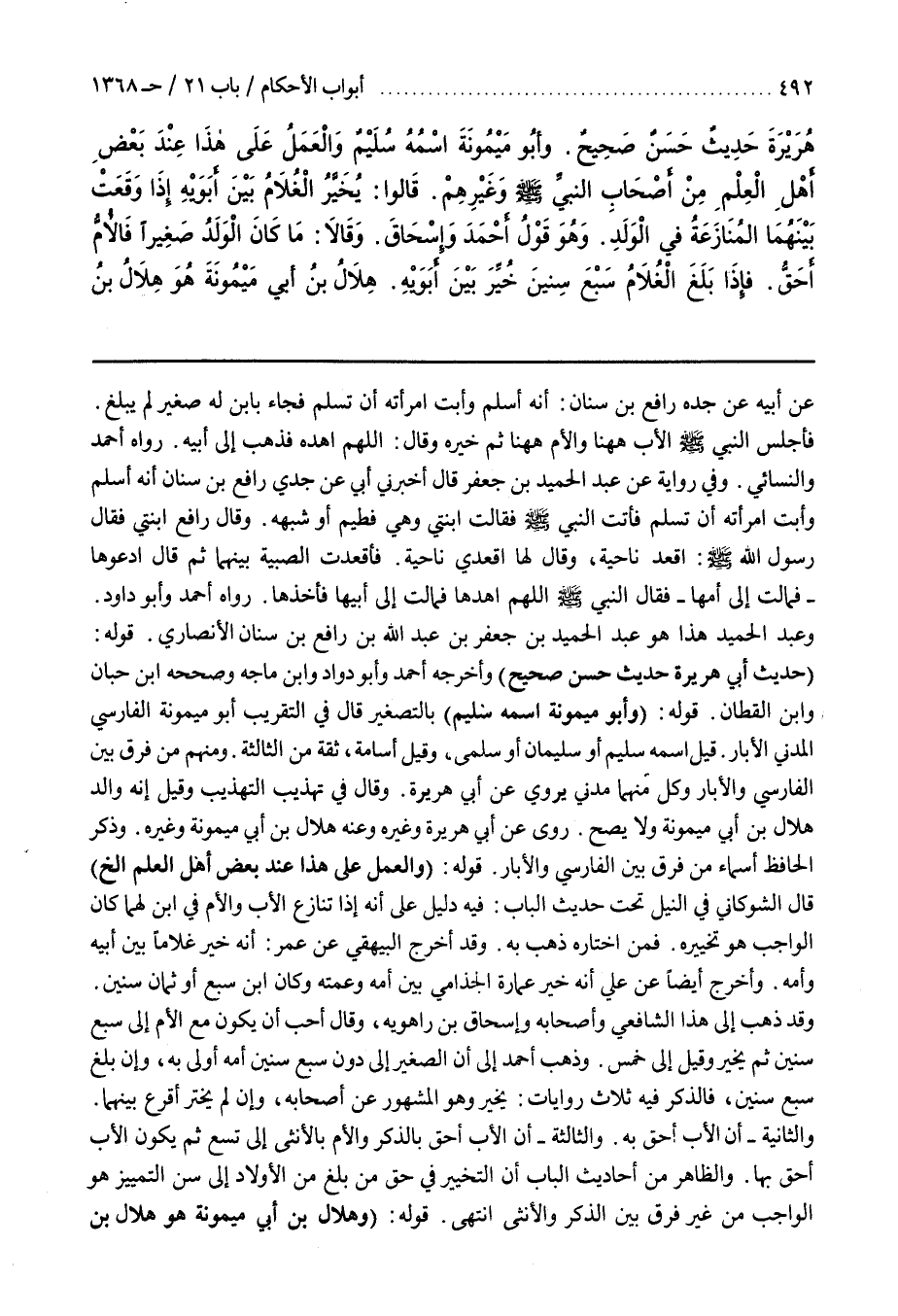 وقَدْ أَخْرَجَ الْبَيْهَقِيُّ عَنْ عُمَرَ أَنَّهُ خَيَّرَ غُلَامًا بَيْنَ أَبِيهِ وَأُمِّهِ