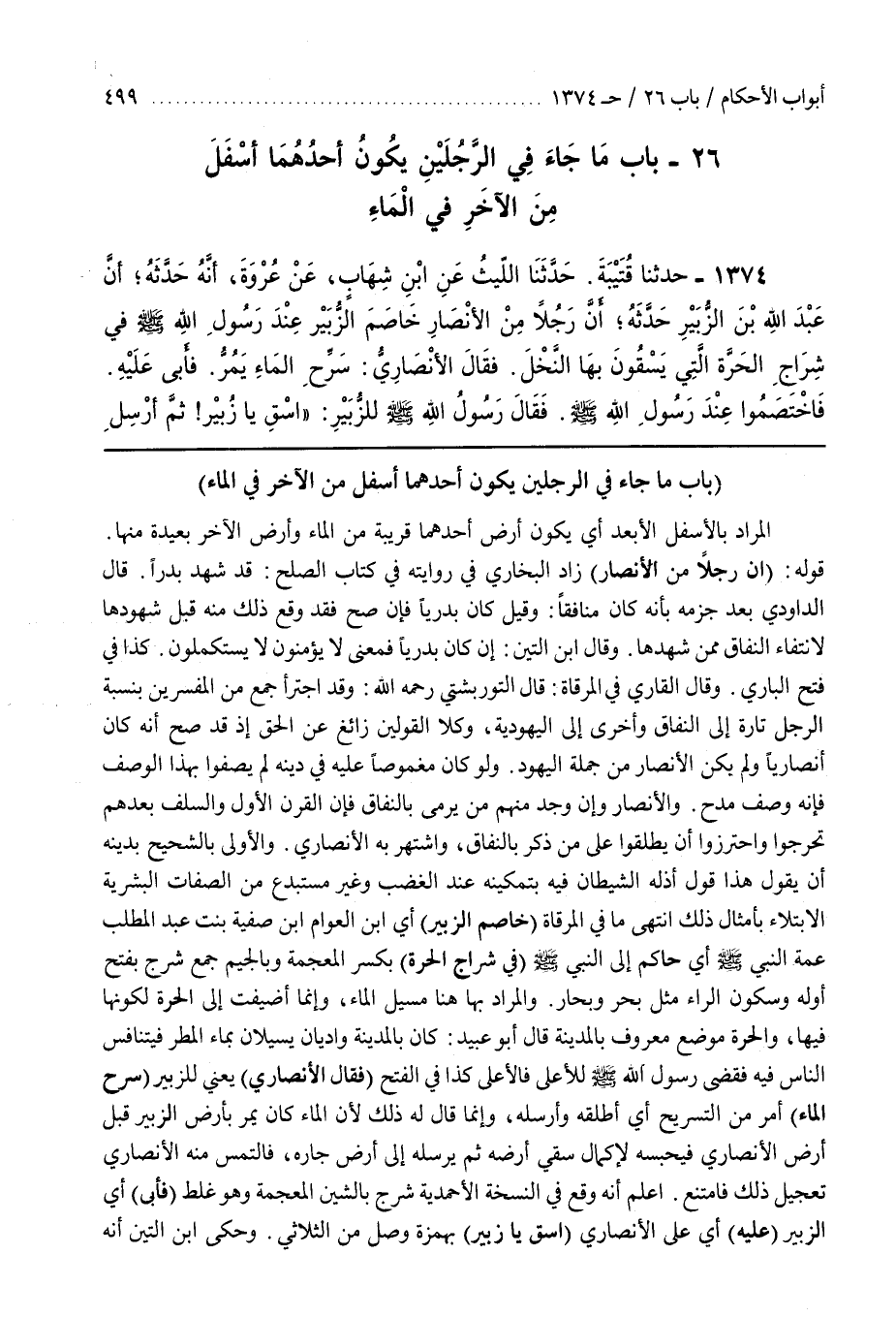 والْأَوْلَى بِالشَّحِيحِ بِدَيْنِهِ أَنْ يَقُولَ هَذَا قَوْلٌ أَذَلَّهُ الشَّيْطَانُ فِيهِ بِتَمَكُّنِهِ عِنْدَ الْغَضَبِ وَغَيْرُ مُسْتَبْدَعٍ مِنَ الصِّفَاتِ الْبَشَرِيَّةِ الِابْتِلَاءُ بِأَمْثَالِ ذَلِكَ انْتَهَى مَا فِي الْمِرْقَاةِ (خَاصَمَ الزُّبَيْرَ) أَيْ بن العوام بن صَفِيَّةَ بِنْتِ عَبْدِ الْمُطَّلِبِ عَمَّةِ النَّبِيِّ صَلَّى اللَّهُ عَلَيْهِ وَسَلَّمَ أَيْ حَاكَمَ إِلَى النَّبِيِّ صَلَّى اللَّهُ عَلَيْهِ وَسَلَّمَ (فِي شِرَاجِ الْحَرَّةِ) بِكَسْرِ الْمُعْجَمَةِ وَبِالْجِيمِ جَمْعُ شَرْجٍ بِفَتْحِ أَوَّلِهِ وَسُكُونِ الرَّاءِ مِثْلُ بَحْرٍ وَبِحَارٍ