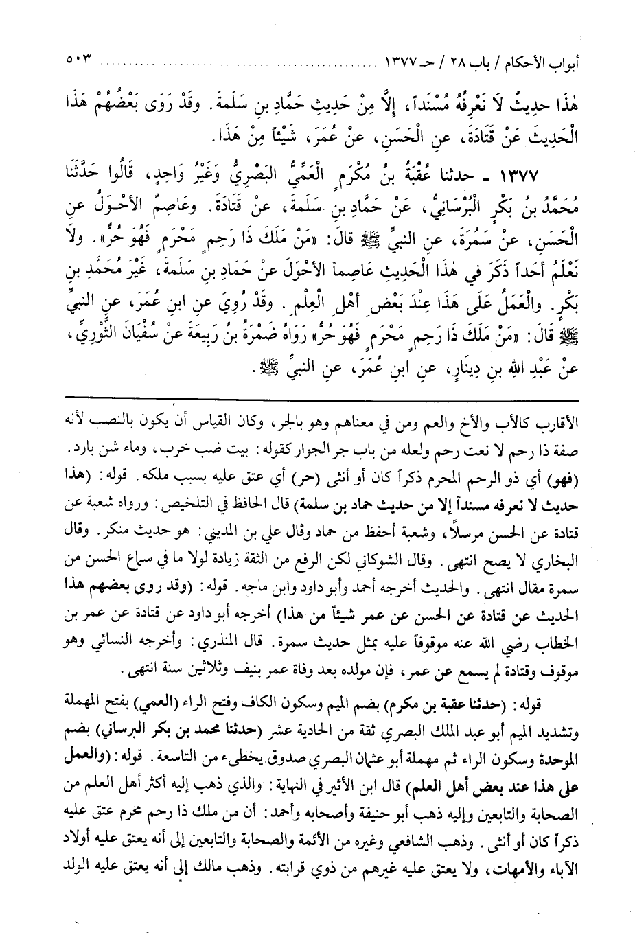 قَوْلُهُ (وَالْعَمَلُ عَلَى هَذَا عِنْدَ بَعْضِ أَهْلِ العلم) قال بن الْأَثِيرِ فِي النِّهَايَةِ وَالَّذِي ذَهَبَ إِلَيْهِ أَكْثَرُ أَهْلِ الْعِلْمِ مِنَ الصَّحَابَةِ وَالتَّابِعِينَ وَإِلَيْهِ ذَهَبَ أَبُو حَنِيفَةَ وَأَصْحَابُهُ وَأَحْمَدُ أَنَّ مَنْ مَلَكَ ذَا رَحِمٍ مَحْرَمٍ عَتَقَ عَلَيْهِ ذَكَرًا كَانَ أَوْ أُنْثَى