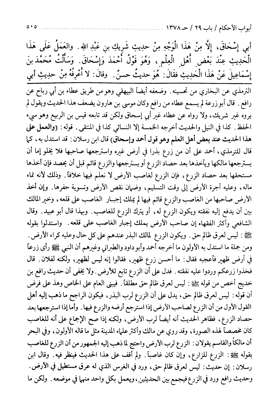 وحَدِيثُ رَافِعٍ وَرَدَ فِي الزَّرْعِ فَيُجْمَعُ بَيْنَ الْحَدِيثَيْنِ وَيُعْمَلُ بِكُلِّ وَاحِدٍ مِنْهُمَا فِي مَوْضِعِهِ
