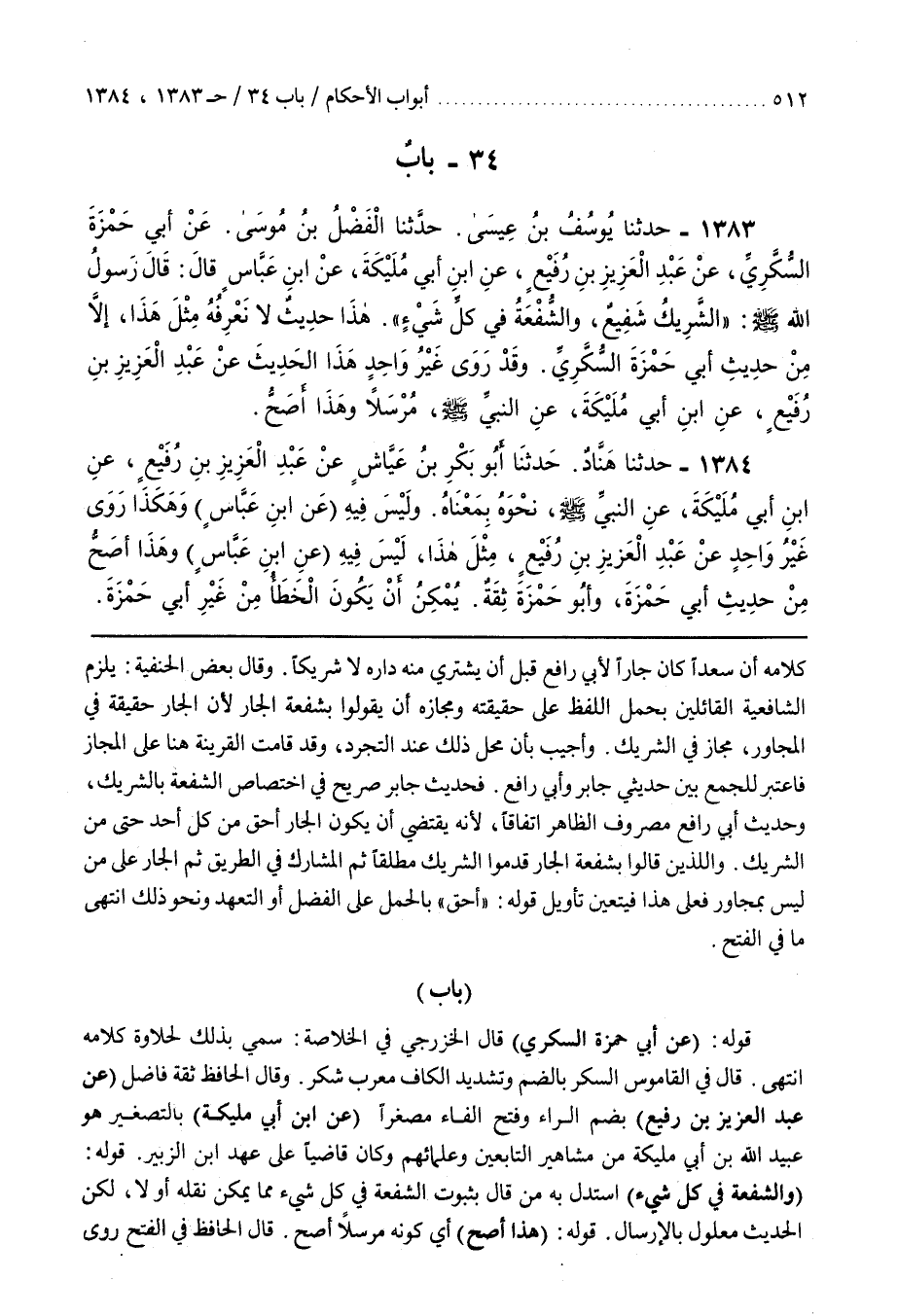 4 - (بَاب مَا جَاءَ أَنَّ الشَّرِيكَ شَفِيعٌ)