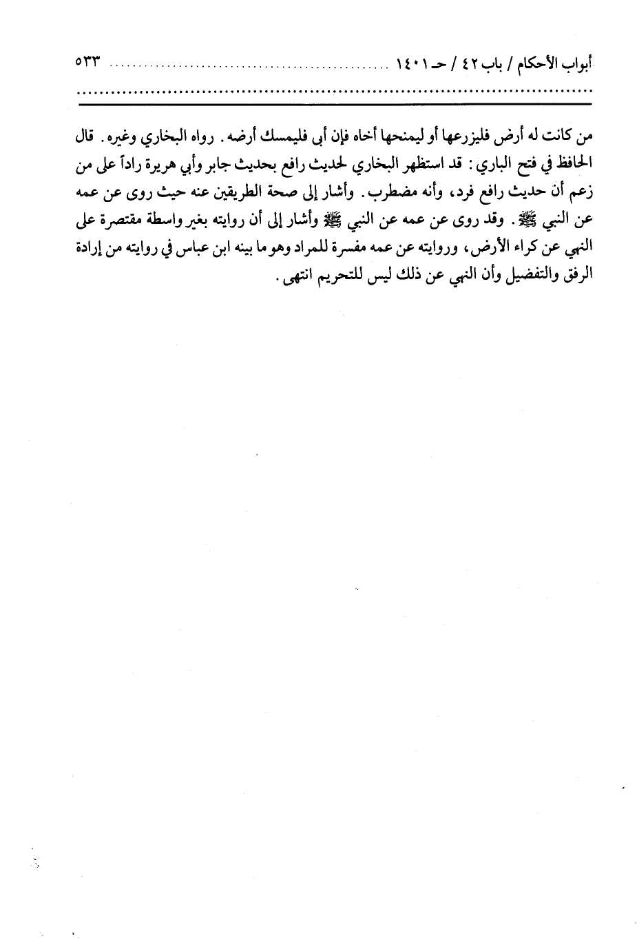رَوَاهُ الْبُخَارِيُّ وَغَيْرُهُ عَنْ أَبِي هُرَيْرَةَ مَرْفُوعًا مَنْ كَانَتْ لَهُ أَرْضٌ فَلْيَزْرَعْهَا أَوْ لِيَمْنَحْهَا أَخَاهُ فَإِنْ أَبَى فَلْيُمْسِكْ أَرْضَهُ