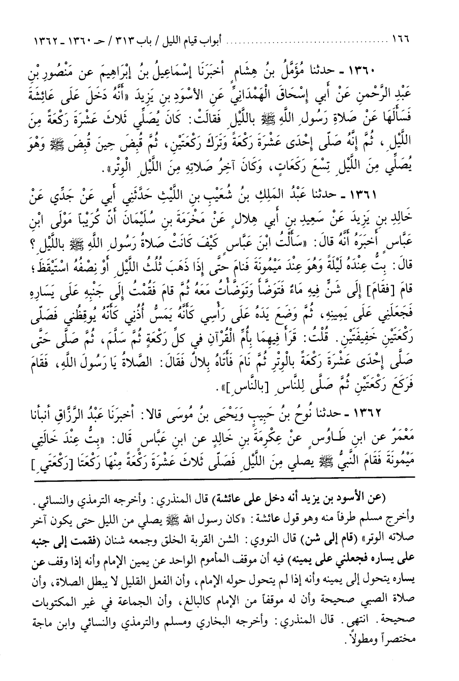 وَأَخْرَجَ مُسْلِمٌ طَرَفًا مِنْهُ وَهُوَ قَوْلُ عَائِشَةَ كَانَ رسول الله يُصَلِّي مِنَ اللَّيْلِ حَتَّى يَكُونَ آخِرَ صَلَاتِهِ الْوِتْرُ