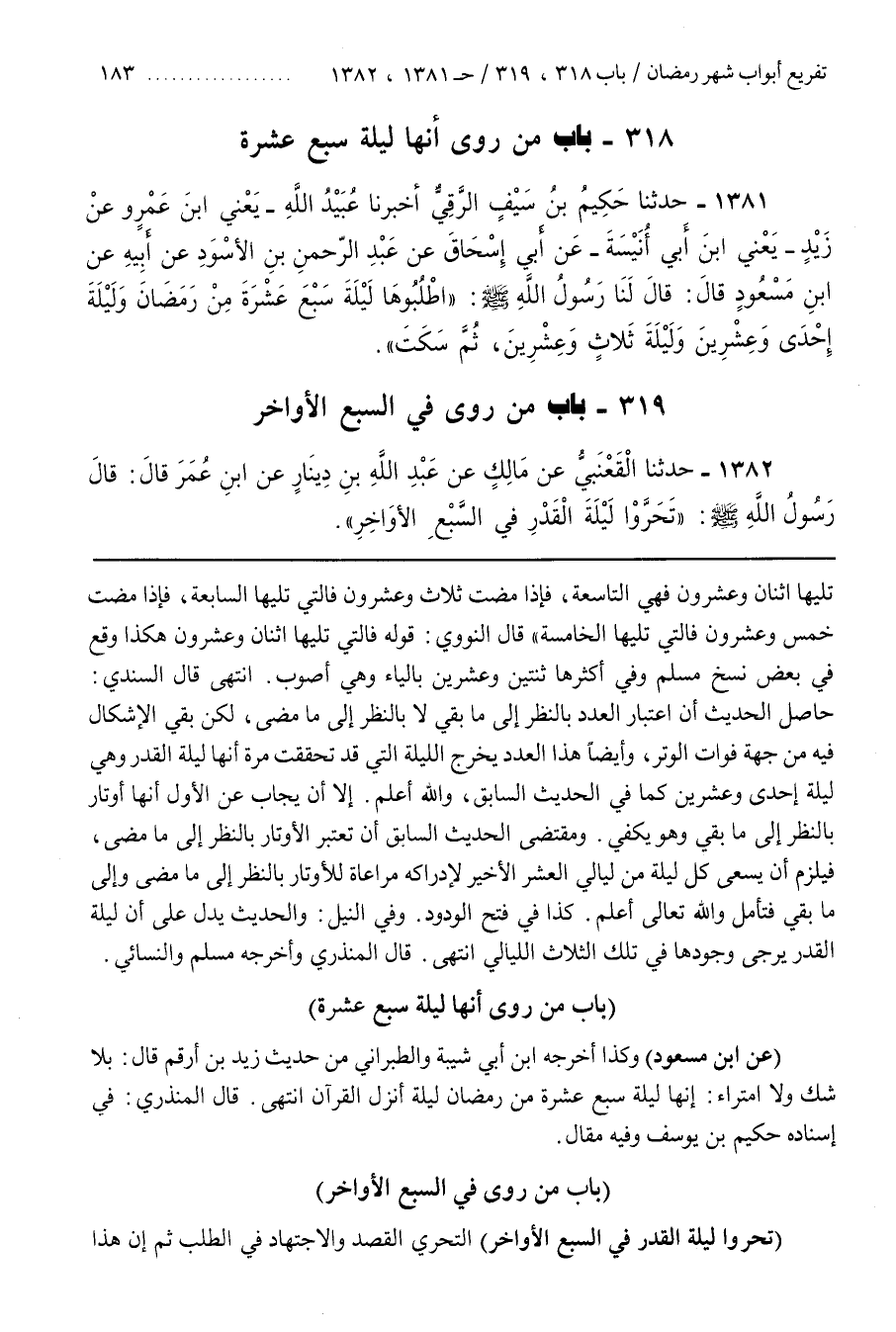 [1385] (تَحَرُّوا لَيْلَةَ الْقَدْرِ فِي السَّبْعِ الْأَوَاخِرِ) التَّحَرِّي الْقَصْدُ وَالِاجْتِهَادُ فِي الطَّلَبِ ثُمَّ إِنَّ هَذَا