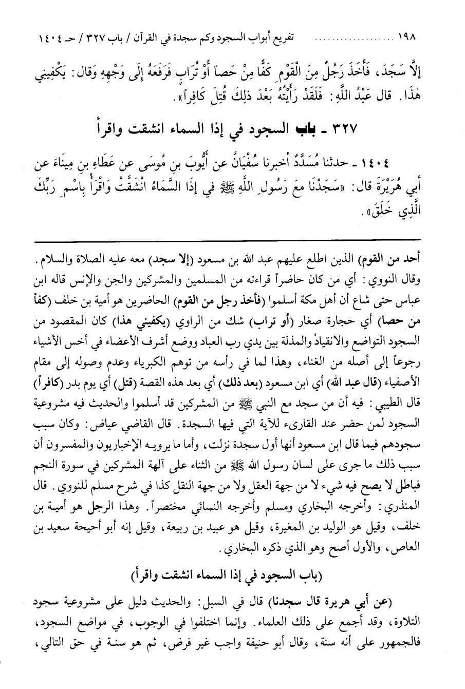 وَاقْرَأْ [1407] (عَنْ أَبِي هُرَيْرَةَ قَالَ سَجَدْنَا) قَالَ فِي السُّبُلِ وَالْحَدِيثُ دَلِيلٌ عَلَى مَشْرُوعِيَّةِ سُجُودِ التِّلَاوَةِ وَقَدْ أَجْمَعَ عَلَى ذَلِكَ الْعُلَمَاءُ