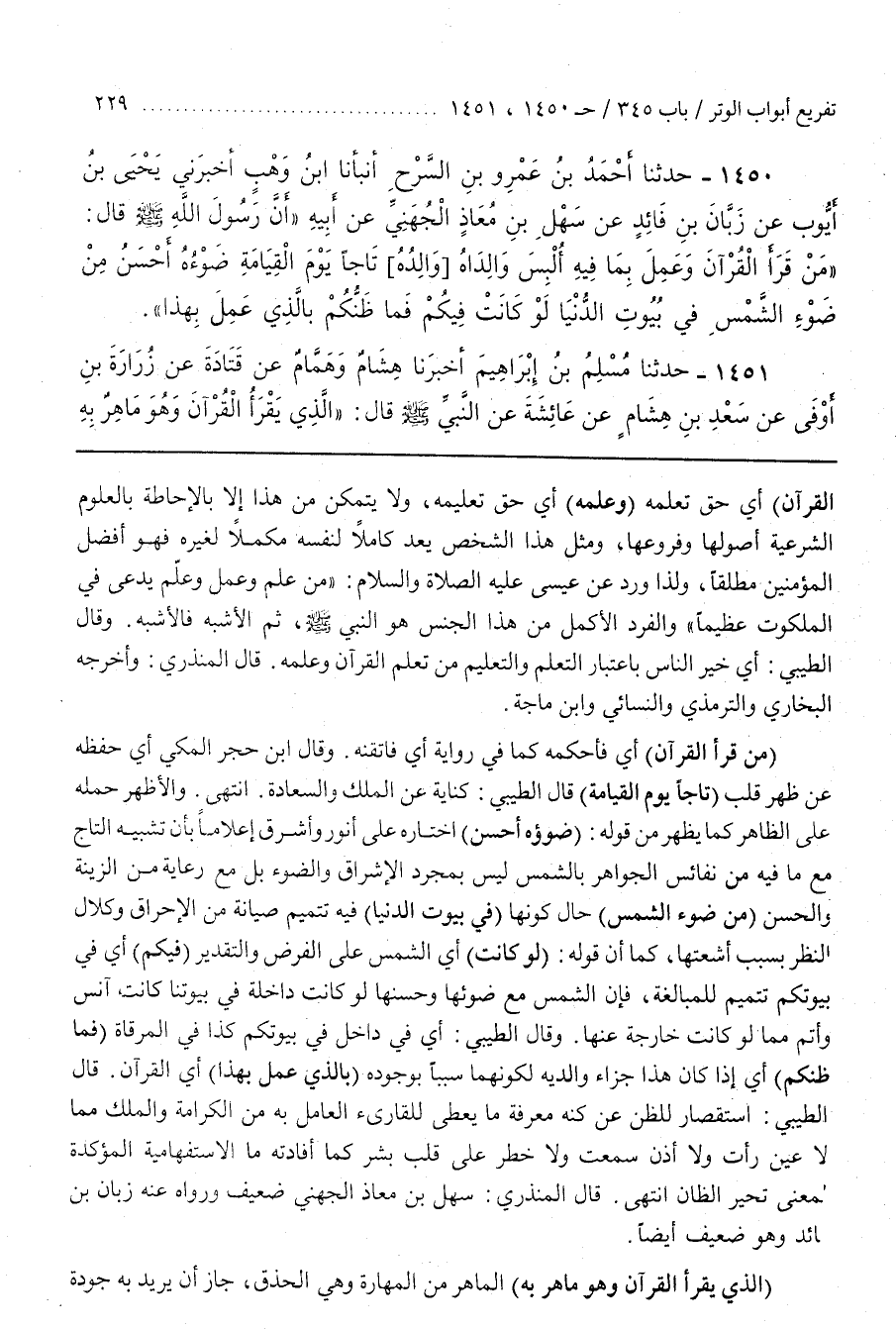[1454] (الَّذِي يَقْرَأُ الْقُرْآنَ وَهُوَ مَاهِرٌ بِهِ) الْمَاهِرُ مِنَ الْمَهَارَةِ وَهِيَ الْحِذْقُ جَازَ أَنْ يُرِيدَ بِهِ جَوْدَةَ