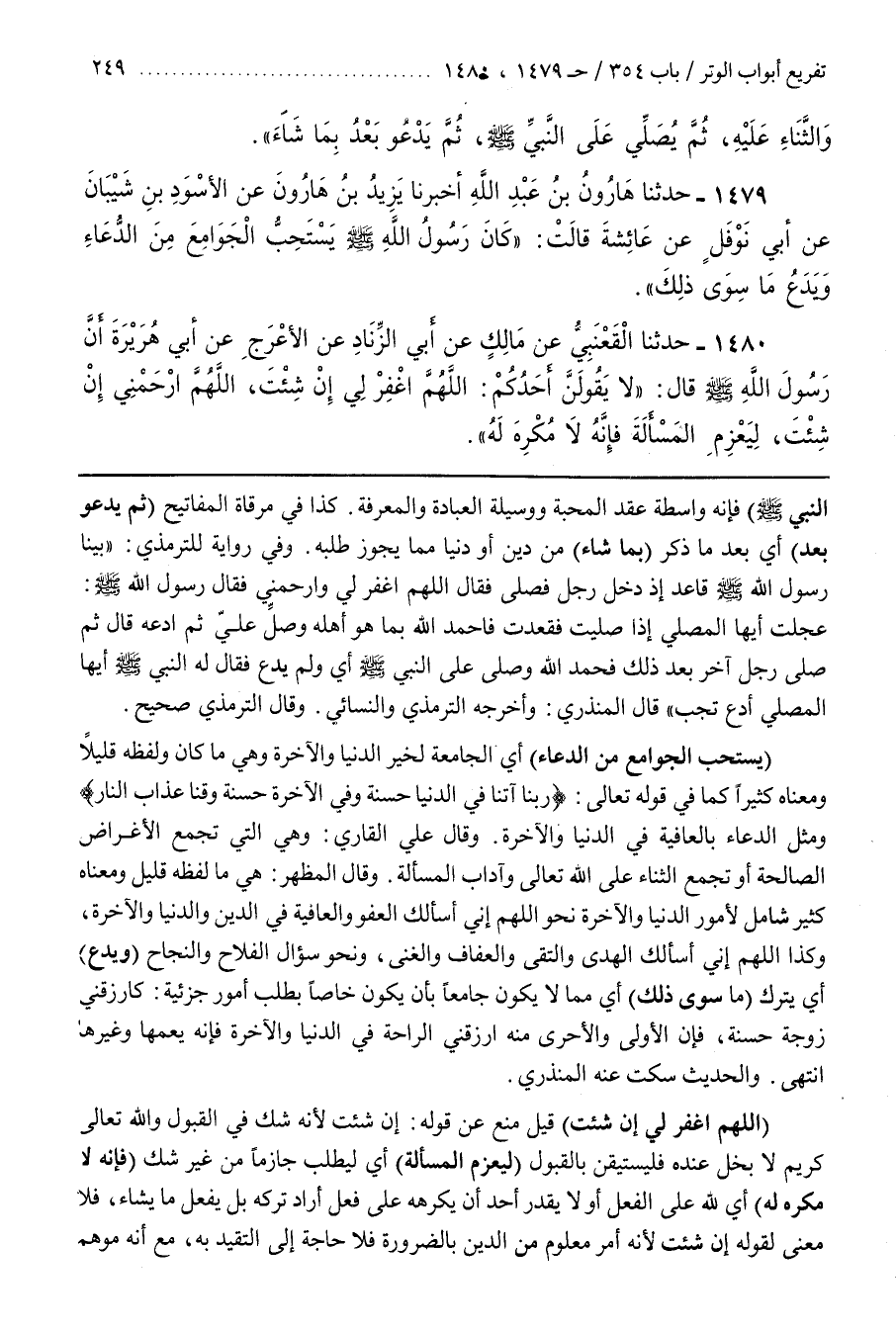 كَذَا فِي مِرْقَاةِ الْمَفَاتِيحِ (ثُمَّ يدعو بعد) أي بعد ما ذَكَرَ (بِمَا شَاءَ) مِنْ دِينٍ أَوْ دُنْيَا مما يجوز طلبه