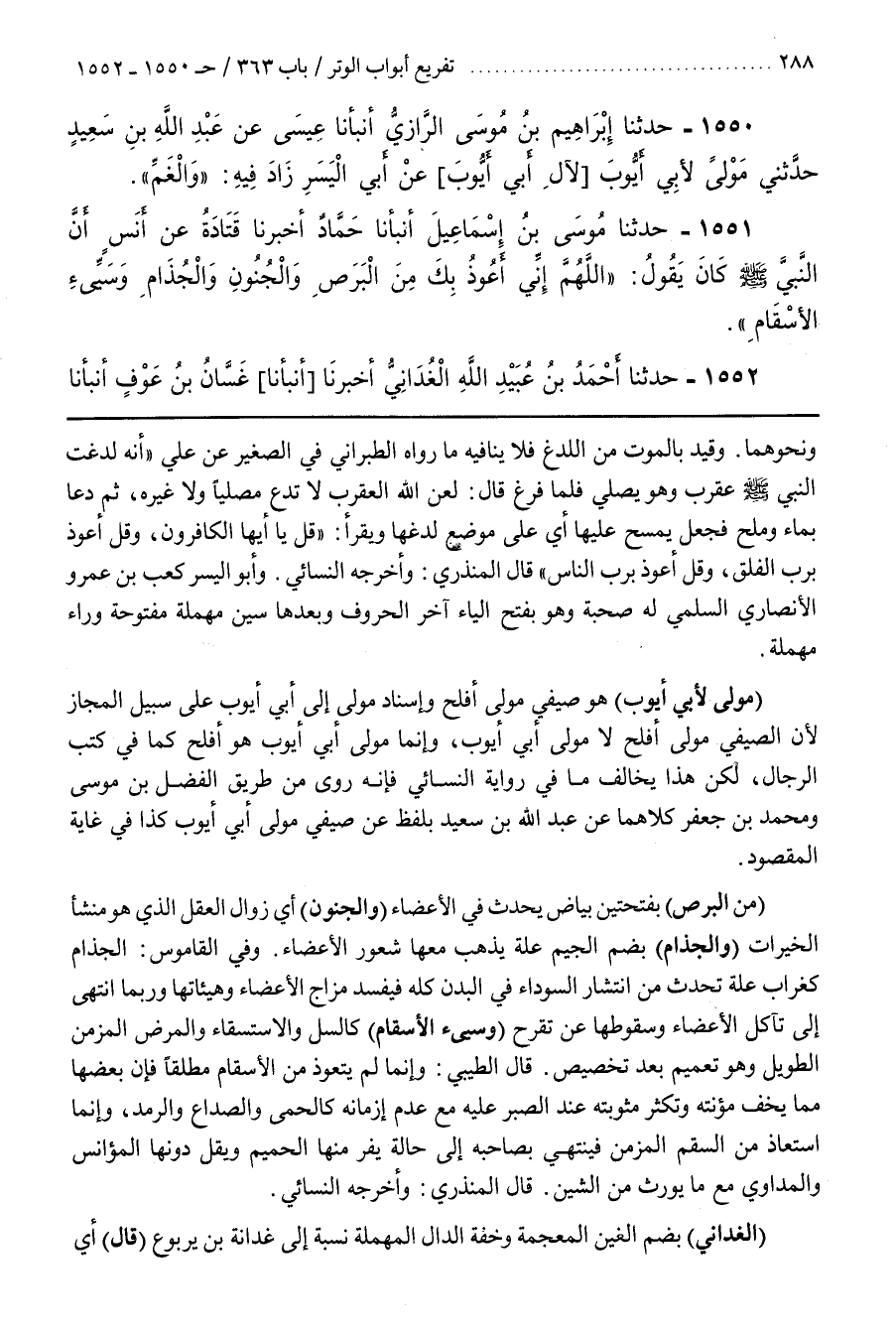 [1554] (مِنَ الْبَرَصِ) بِفَتْحَتَيْنِ بَيَاضٍ يَحْدُثُ فِي الْأَعْضَاءِ (وَالْجُنُونِ) أَيْ زَوَالِ الْعَقْلِ الَّذِي هُوَ مَنْشَأُ الْخَيْرَاتِ (وَالْجُذَامِ) بِضَمِّ الْجِيمِ عِلَّةٌ يَذْهَبُ مَعَهَا شُعُورُ الْأَعْضَاءِ