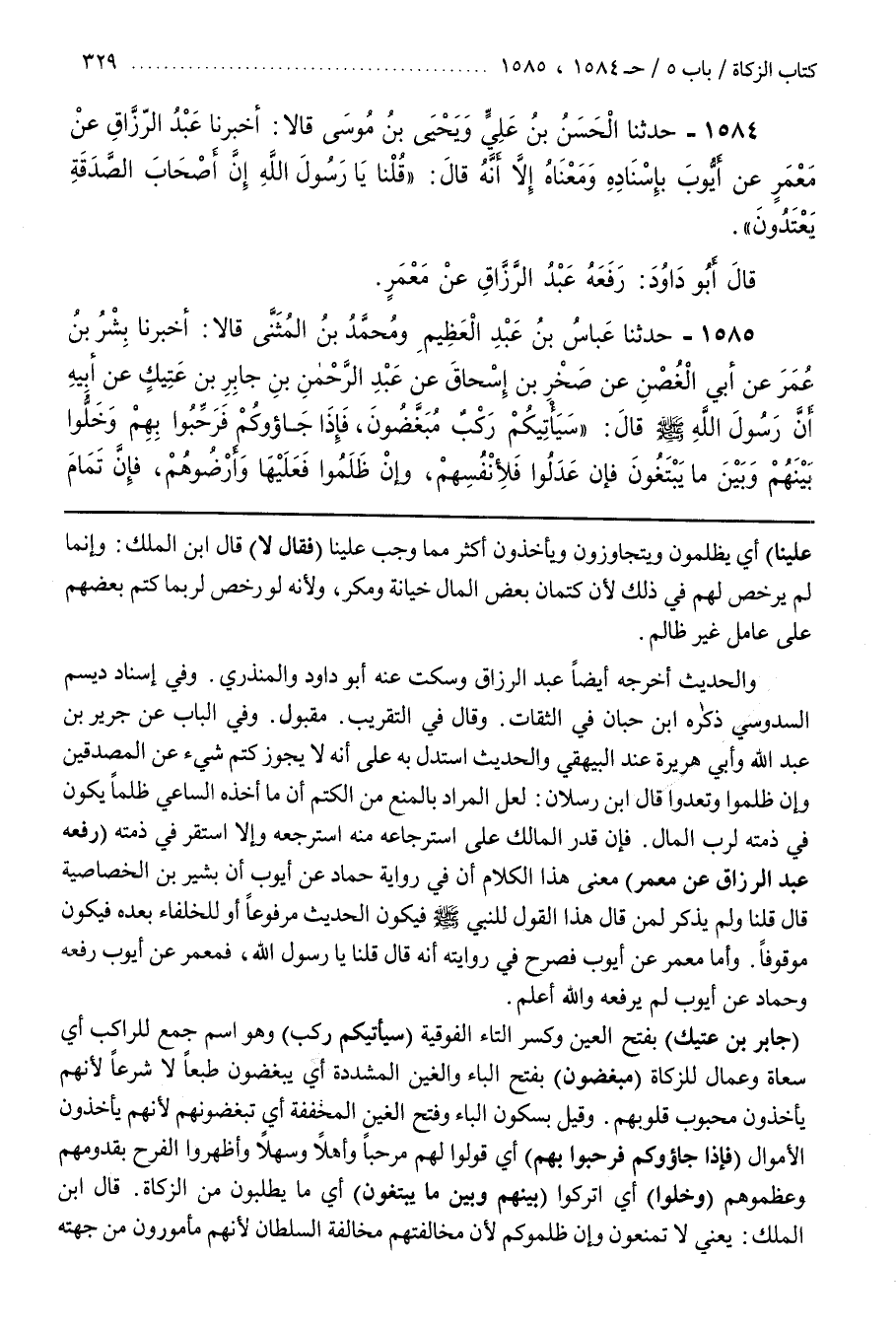 [1588] (جَابِرُ بْنُ عَتِيكٍ) بِفَتْحِ الْعَيْنِ وَكَسْرِ التَّاءِ الْفَوْقِيَّةِ (سَيَأْتِيكُمْ رَكْبٌ) وَهُوَ اسْمُ جَمْعٍ لِلرَّاكِبِ أَيْ سُعَاةٌ وَعُمَّالٌ لِلزَّكَاةِ (مُبَغَّضُونَ) بِفَتْحِ الْبَاءِ وَالْغَيْنِ الْمُشَدَّدَةِ أَيْ يُبْغَضُونَ طَبْعًا لَا شَرْعًا لِأَنَّهُمْ يَأْخُذُونَ مَحْبُوبَ قُلُوبِهِمْ