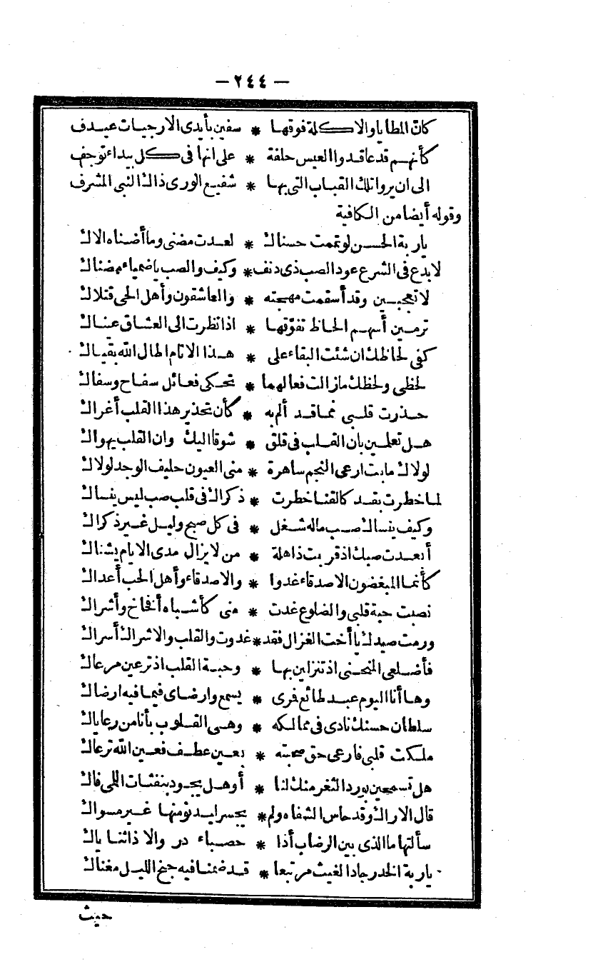 (هَل تعلمين بَان الْقلب فى قلق ... شوقا اليك وان الْقلب يهواك)