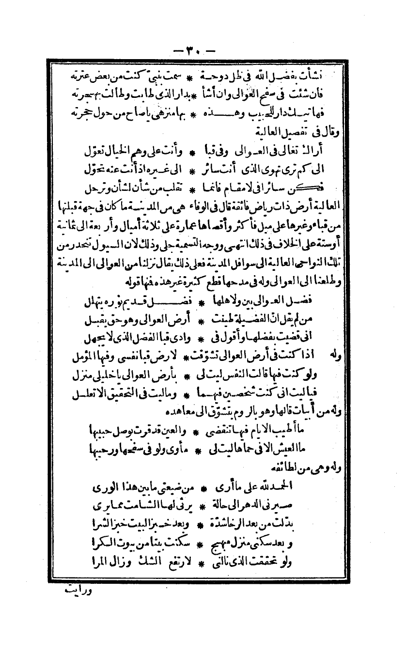 (اذا كنت فى ارْض العوالى تشوقت ... لارض قبا نفسى وفيهَا المؤمل)