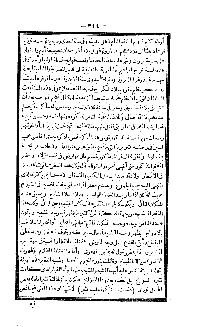 أوقافا كَثِيرَة وَبهَا النَّفْع التَّام لاهل الْمَدِينَة وفى سنة احدى وَسبعين توجه الْوَزير فرهاد باشا الى بِلَاد الْعَجم فَسَار وتوغل فى بِلَاد أذربيجان نَحْو سَبْعَة أَيَّام وَاسْتولى على مَدِينَة روان وَبنى عَلَيْهَا حصنا حصينا وَنصب فِيهَا يُوسُف باشا واليا وأميرا وفى هَذِه السّنة خرج ابراهيم باشا من قسطنطينية الى الديار المصرية والشامية ليصلح مِنْهَا مَا فسد وغزا الدروز وَوَقع لَهُ تأييد وفى سنة اثْنَتَيْنِ وَتِسْعين سَافر فرهاد باشا بعسكر عَظِيم للغزو بِبِلَاد الكرج فَبنى هُنَاكَ عدَّة قلاع وفى هَذِه السّنة بعث السُّلْطَان الْوَزير الاعظم عُثْمَان باشا بعساكر عَظِيمَة الى قتال الْعَجم فَتوجه بعد أَن شَتَّى فى بِلَاد قسطمونى وَسَار فى سنة ثَلَاث وَتِسْعين وَمَعَهُ من العساكر مَالا يعلم عَددهمْ الا الله تَعَالَى وَكَانَ ذَلِك لمحبة النَّاس لَهُ لكرمه وشهامته وَحسن تَدْبيره فعارضه الْعَجم فى الطَّرِيق فَقتل مِنْهُم قتلة عَظِيمَة ثمَّ دخل تبريز فى أَوَاخِر شهر رَمَضَان من السّنة الْمَذْكُورَة وَمن هُنَا أذكر ملخص مَا ذكره جدى القاضى محب الدّين فى رحلته التبريزية الَّتِى مَا نسج على منوالها وَلَا جَادَتْ قريحة بمثالها وَاتفقَ لَهُ السّفر الْمَذْكُور لتسليم مَال عوارض فى قَضَاء تولاه وَحضر الْفَتْح الْمَذْكُور حَتَّى أنهى أمره واستوفاه قَالَ وَكَانَ هَذَا السّفر مِمَّا لم يُشَاهد مثله فى الاسفار وَلَا دون مَا يدانيه فى الْكتب والاسفار لَا سِيمَا جمع كثرته الذى انْتهى اليه جمع الجموع وَعدم حصر أَفْرَاده الَّتِى بلغت الْغَايَة فى الشُّيُوع بِحَيْثُ انه كَانَ اذا سَار يسد الفضاء الْوَاسِع ويملاء الفلا الشاسع ويضيق عَنهُ الْمَكَان النائى وَيكون كالجراد الْمُنْتَشِر بِحَذْف كَاف التَّشْبِيه بِعَين الرائى وَكَانَ هَذَا الْفَقِير اذا شبهه من جِهَة الْكَثْرَة بشئ كثيرا مَا يظْهر فِيهِ وَجه التَّشْبِيه وَيكون لَهُ عِنْد التَّأَمُّل وَجه وجيه فَكَانَ اذا شبهته بالنهر العجاج أَو الْبَحْر المتلاطم بالامواج يظْهر وَجه التَّشْبِيه فى حَال سير بعضه ووقوف الْبَعْض وَقد غطى الْبِقَاع وَألقى القناع على وَجه الارض فتختلف الانظار الحسية فى جِهَة سيره اذا سرى فالبعض يَقُول انه يمشى الْقَهْقَرَى وَأما اذا اخْتَلَط الظلام وَظَهَرت الاضواء من تِلْكَ الْخيام وقابلت بنورها نُجُوم السما وَشبه الْفَقِير هَذِه الْهَيْئَة بِتِلْكَ الْهَيْئَة الْتبس عَلَيْهِ أَيهمَا الْمُشبه والمشبه بِهِ مِنْهُمَا وَأما الْغُبَار الذى كَانَت تثيره السوابح بل تعقده بعدوها الضوابح فَكَانَ يذكرنَا ذَلِك مَا كثيرا قَالَه بعض افاضل الورى عقدت سنابكها عَلَيْهَا عثيرا لَا شُبْهَة ان هَذَا الْمَعْنى فِيمَا نَحن