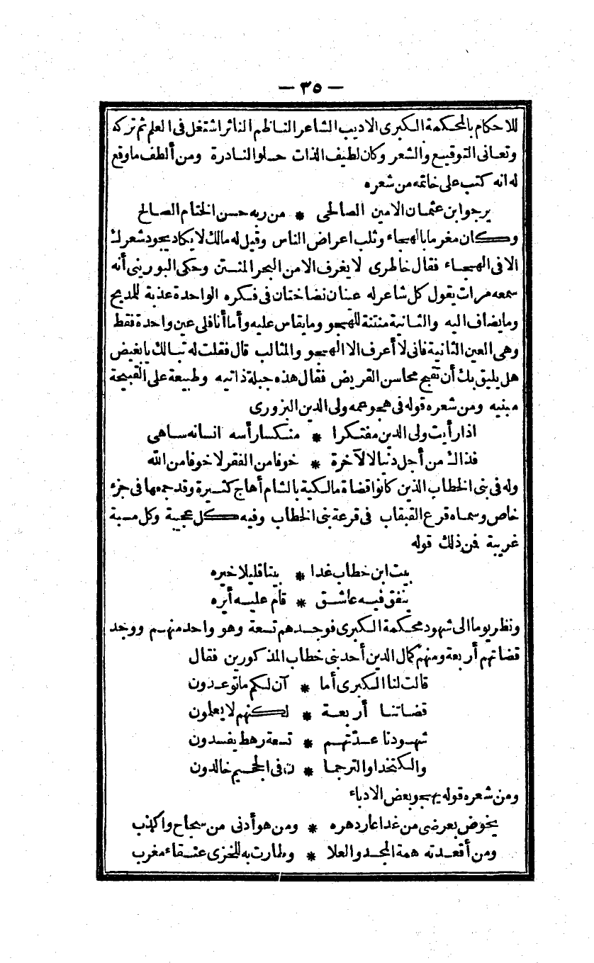 للاحكام بالمحكمة الْكُبْرَى الاديب الشَّاعِر النَّاظِم الناثر اشْتغل فى الْعلم ثمَّ تَركه وتعانى التوقيع وَالشعر وَكَانَ لطيف الذَّات حُلْو النادرة وَمن ألطف مَا وَقع لَهُ انه كتب على خَاتمه من شعره