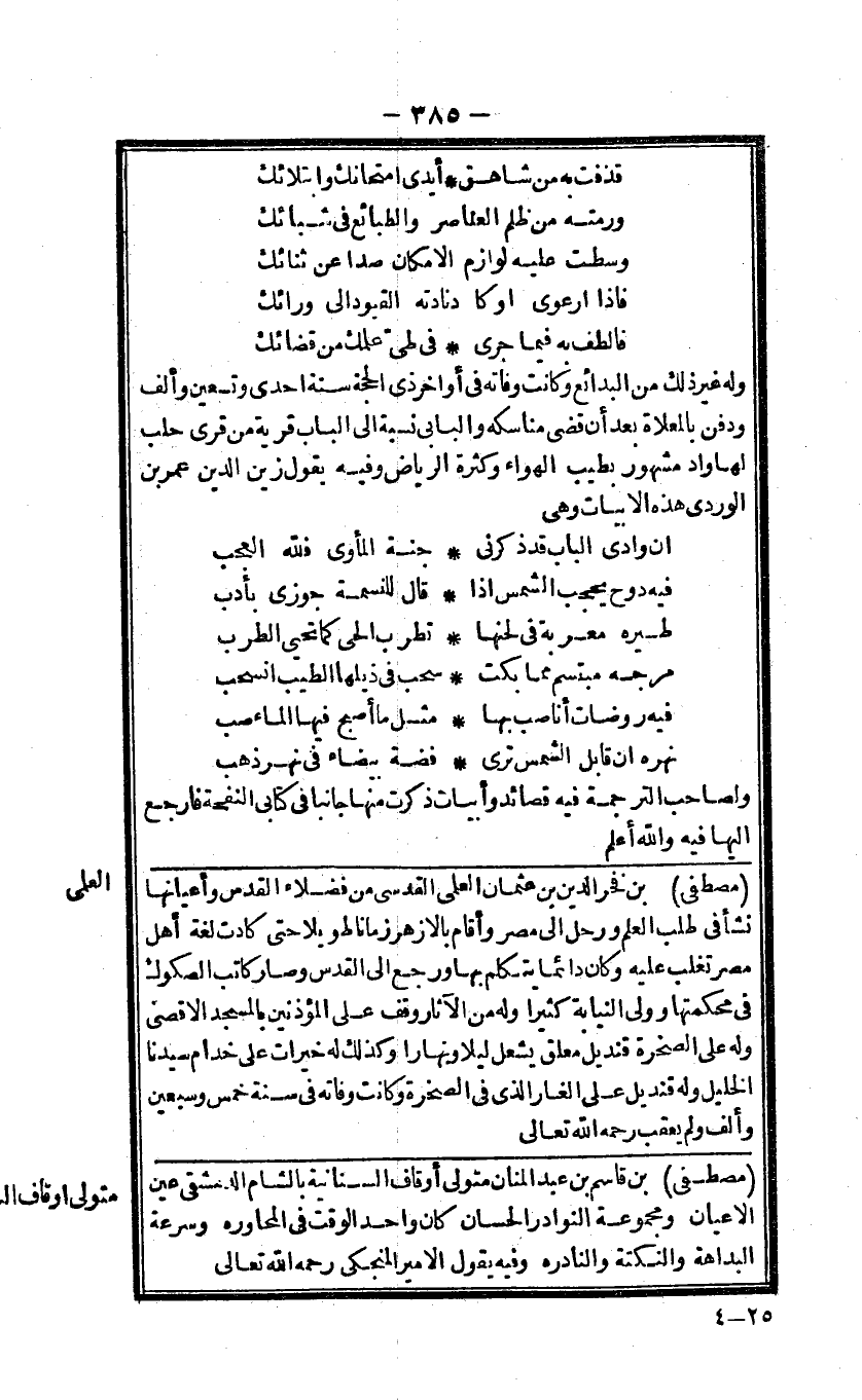 مصطفى بن قَاسم عبد المنان متولى أوقاف السنانية بِالشَّام الدمشقى عين الاعيان ومجموعة النَّوَادِر الحسان كَانَ وَاحِد الْوَقْت فى المحاوره وَسُرْعَة البداهة والنكتة والنادره وَفِيه يَقُول الامير المنجكى رَحمَه الله تَعَالَى
