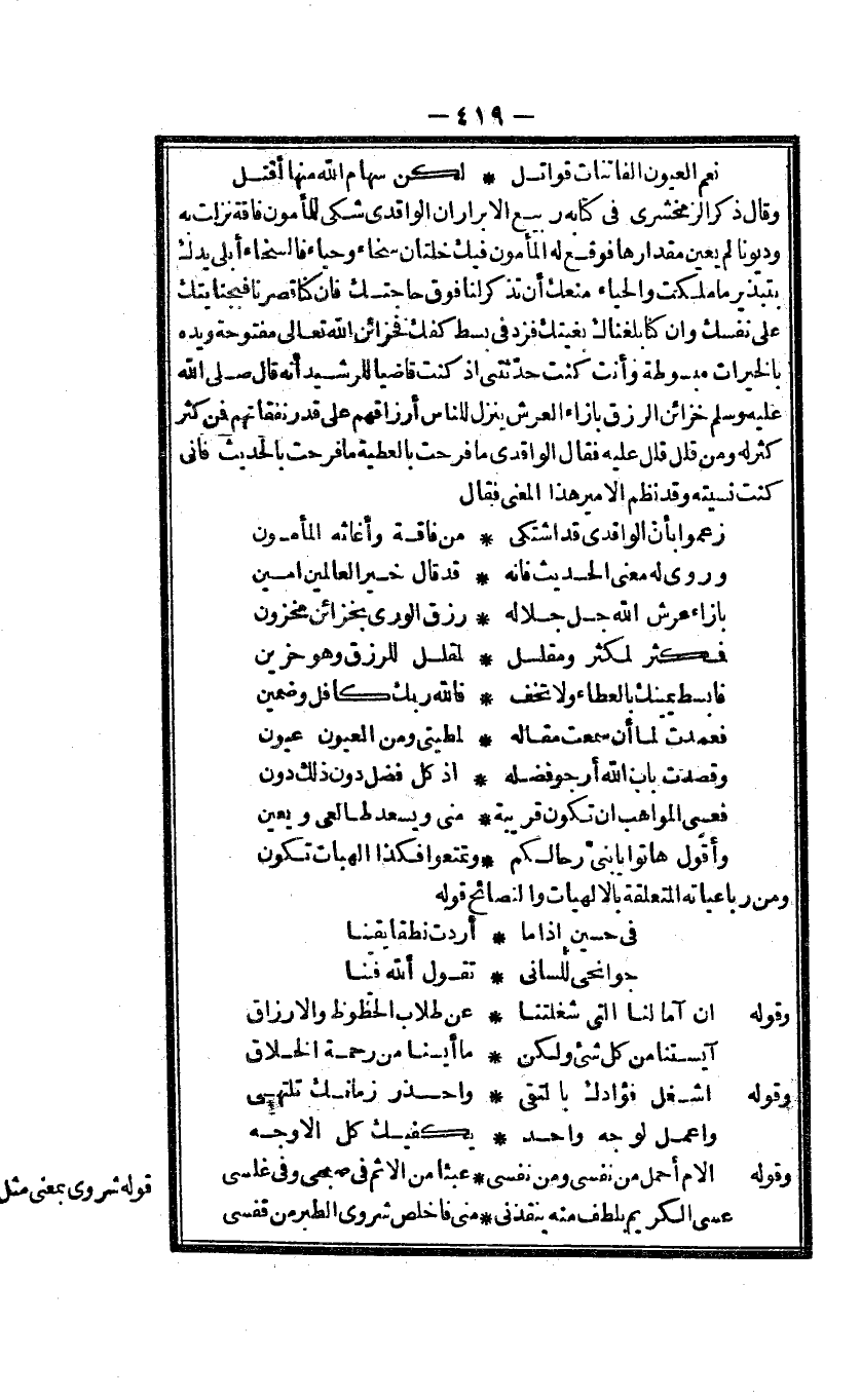وخزائن الرزق بازاء الْعَرْش ينزل للنَّاس أَرْزَاقهم على قدر نفقاتهم فَمن كثر كثر لَهُ وَمن قلل قلل عَلَيْهِ فَقَالَ الواقدى مَا فرحت بِالْعَطِيَّةِ مَا فرحت بِالْحَدِيثِ فانى كنت نَسِيته وَقد نظم الامير هَذَا الْمَعْنى قَالَ