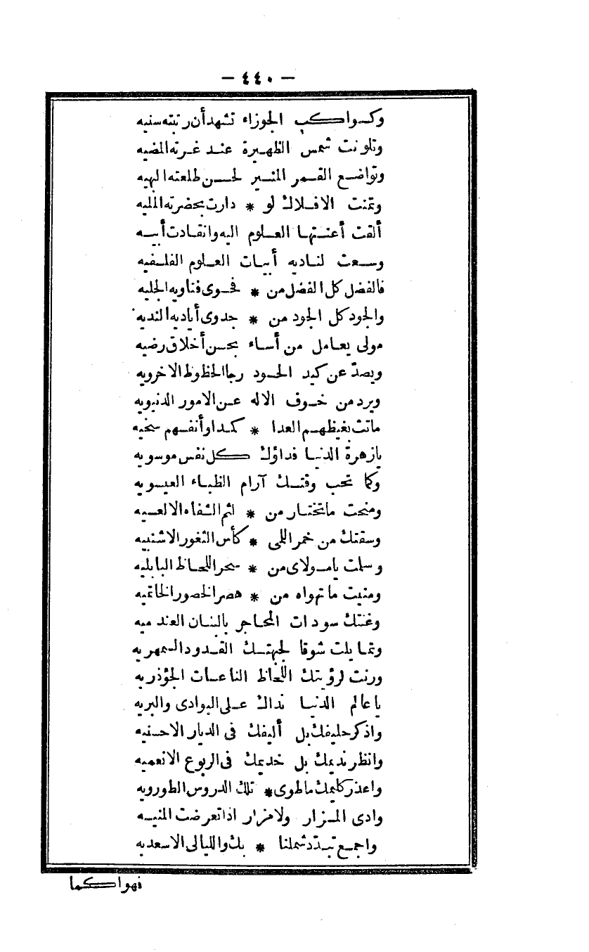 (وتمنت الافلاك لَو ... دارت بِحَضْرَتِهِ المليه)