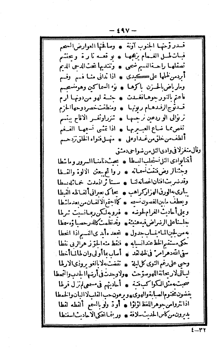 (حكى مُسْتَقِيم الْخط عِنْد انسيابه ... فنقط مِنْهُ الجو زهر الربى نقطا)