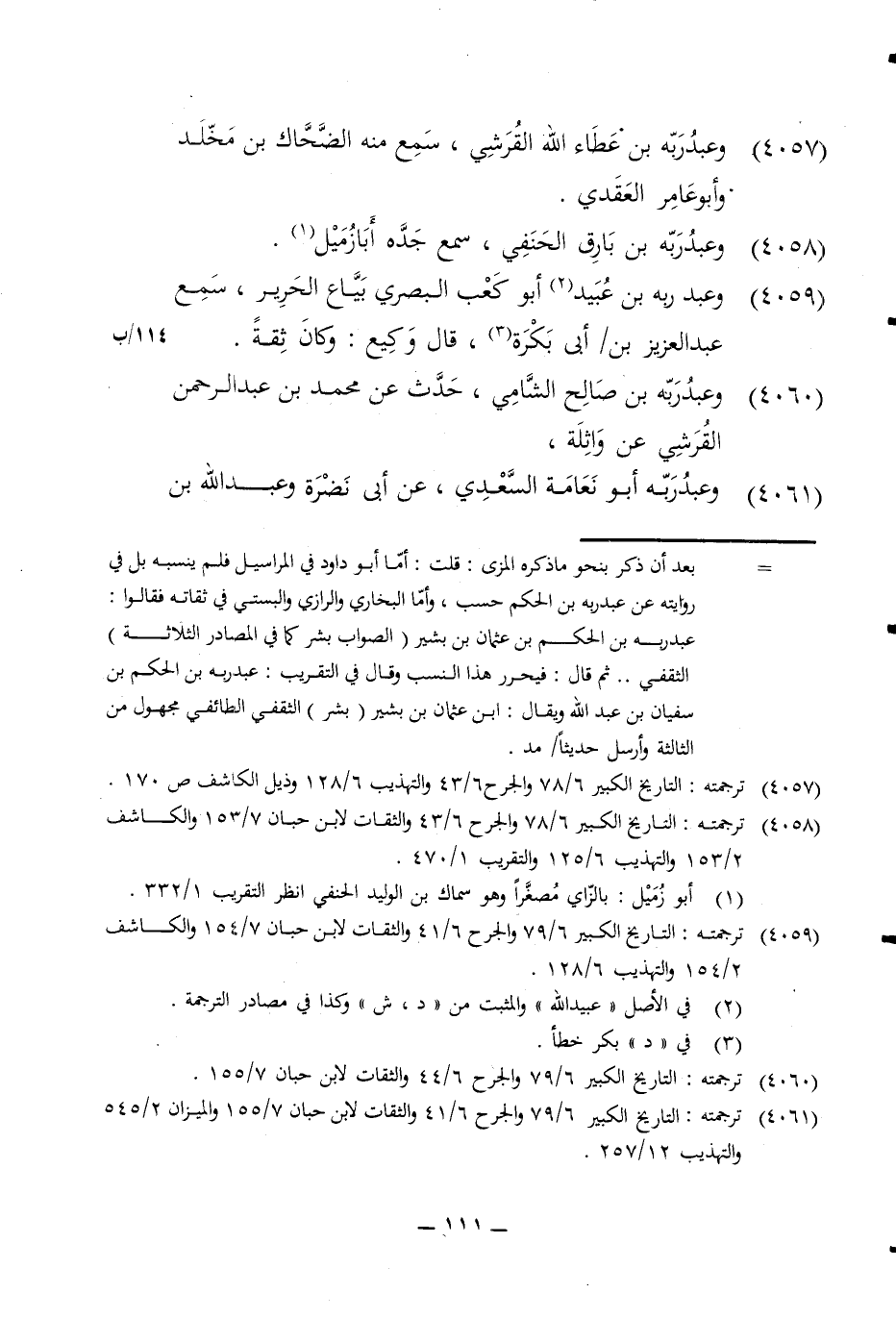 4061 - وَعبد ربه أَبُو نعَامَة السَّعْدِيّ عَن أبي نَضرة وَعبد الله بن الصَّامِت وَأبي عُثْمَان النَّهْدِيّ وَغَيرهم حدث عَنهُ شُعْبَة وَحَمَّاد بن سَلمَة ومرحوم بن عبد الْعَزِيز حَدِيثه فِي الصَّحِيح لمُسلم