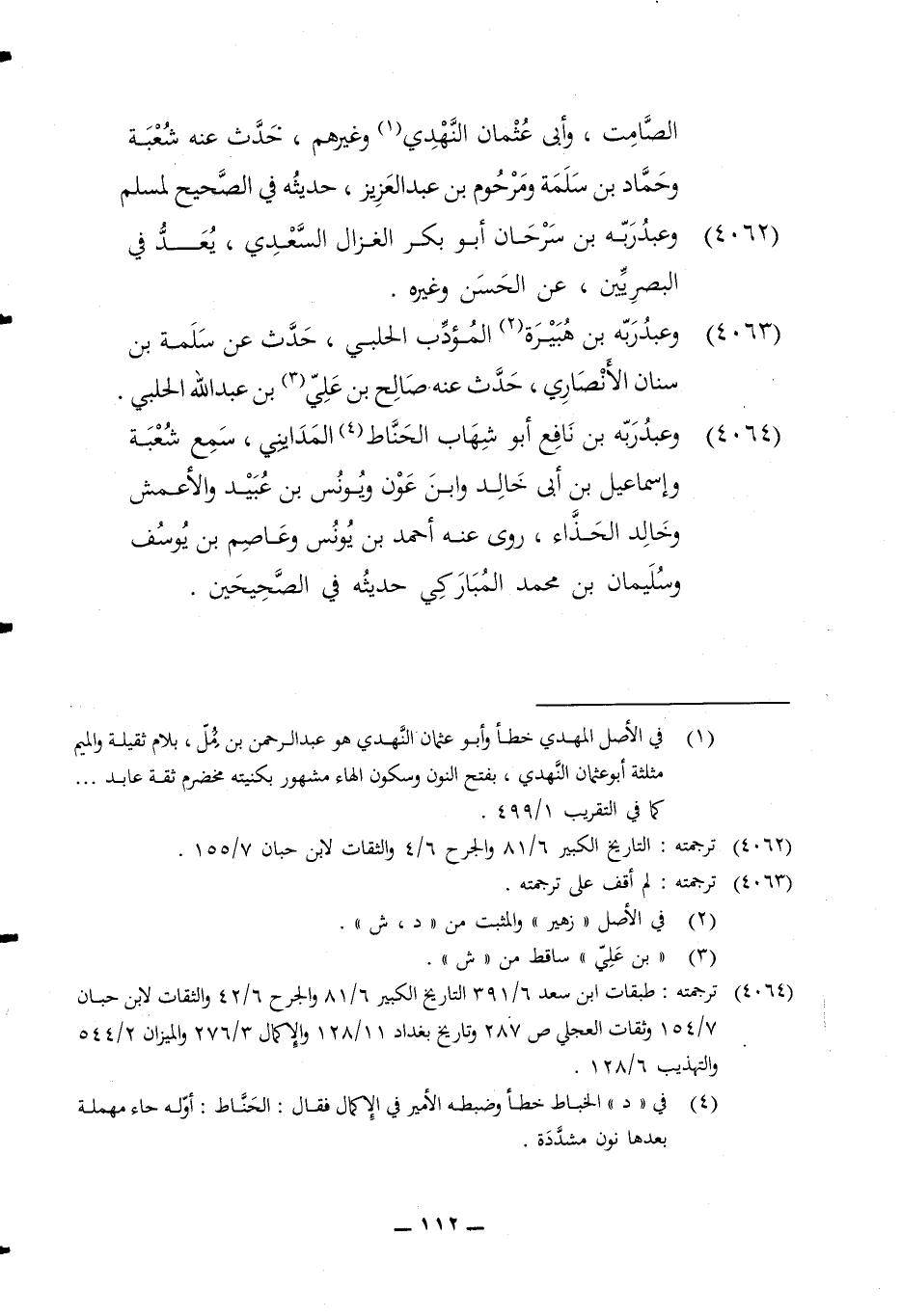 4064 - وَعبد ربه بن نَافِع أَبُو شهَاب الحناط المدايني سمع شُعْبَة وَإِسْمَاعِيل بن أبي خَالِد وَابْن عون وَيُونُس بن عبيد وَالْأَعْمَش وخَالِد الْحذاء روى عَنهُ أَحْمد بن يُونُس وَعَاصِم بن يُوسُف وَسليمَان بن مُحَمَّد المباركي حَدِيثَة فِي الصَّحِيحَيْنِ